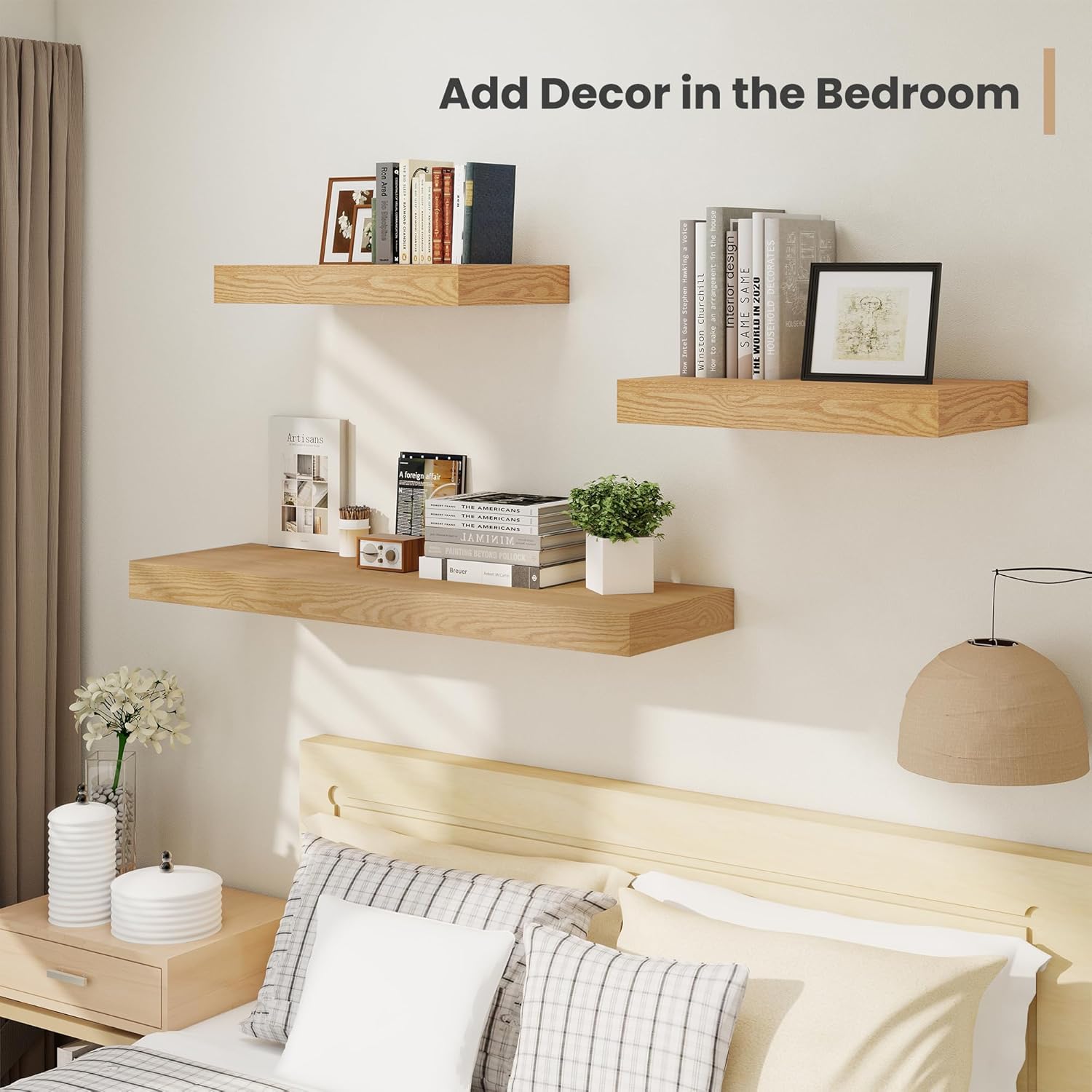 Heimlove 24 x 12 Inch Deep Floating Shelves Wall Mounted with Invisible Brackets,Storage Hanging Shelf for Wall Decor in Bathroom, Bedroom, Toilet, Kitchen, Living Room, Office Set of 2 (Oak)
