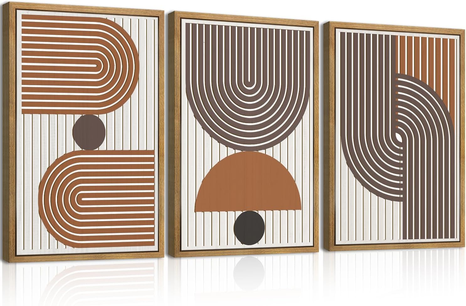 Mid Century Boho Modern Wall Art Set Abstract Geometric Wooden Wall Decor Minimalist Line Neutral Artwork Mid Century Wood Art Decor for Living Room Bedroom Office-16x24Inch x3