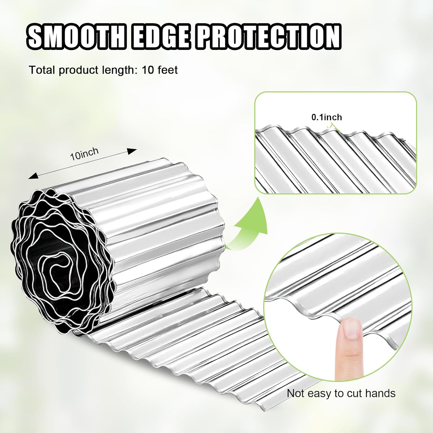 Corrugated Metal Garden Edging - 10 Inch X 10 FT Landscape Edging Border, Flexible Border for Garden Fence, Flower Bed, and Lawn (Silver)