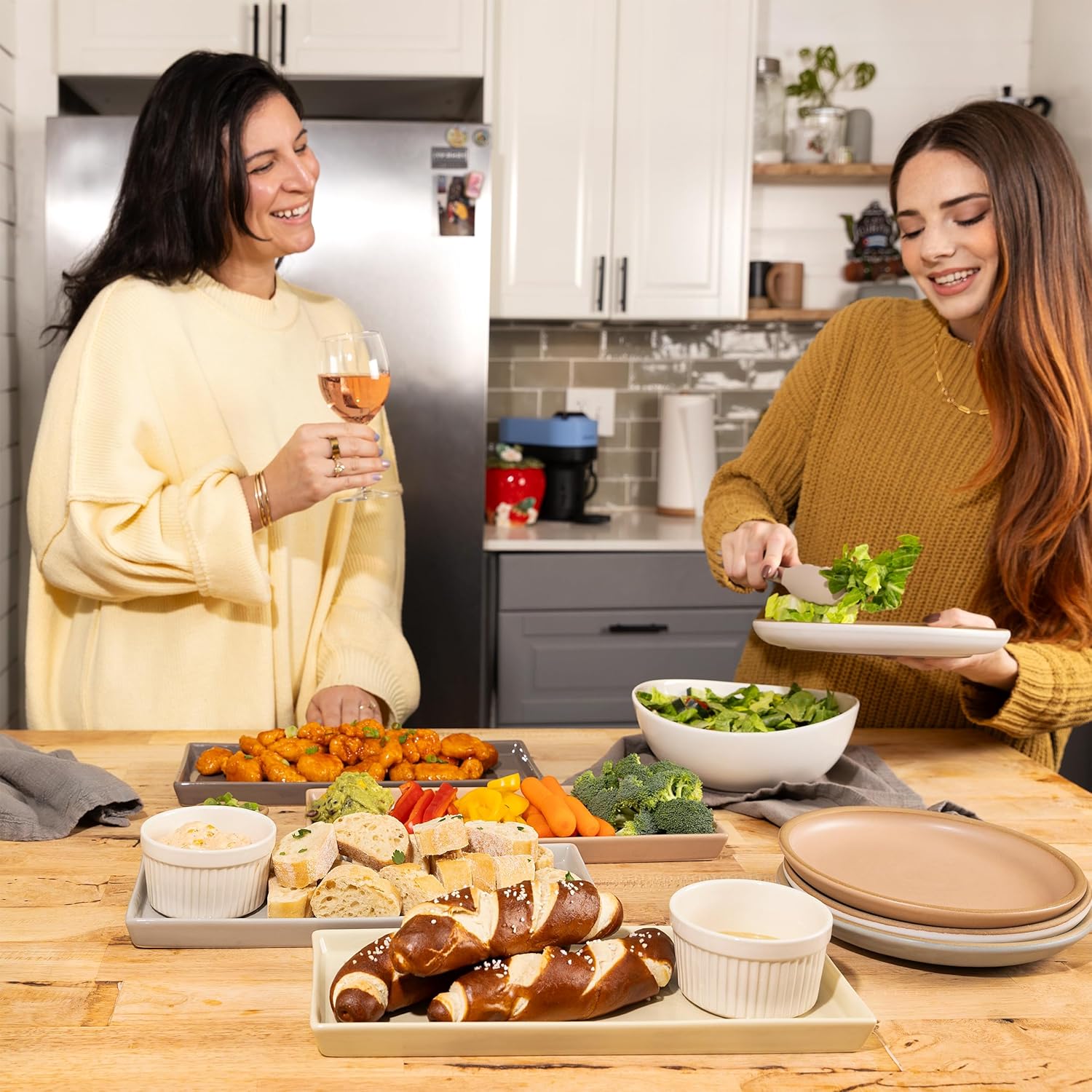 - Set of 4 Ceramic Trays β Uniquely and beautifully designed rectangular ceramic serving trays that are great for any occasion; Beautiful neutral colors will match any of your homeβs decor; Each dish is 14β x 6β