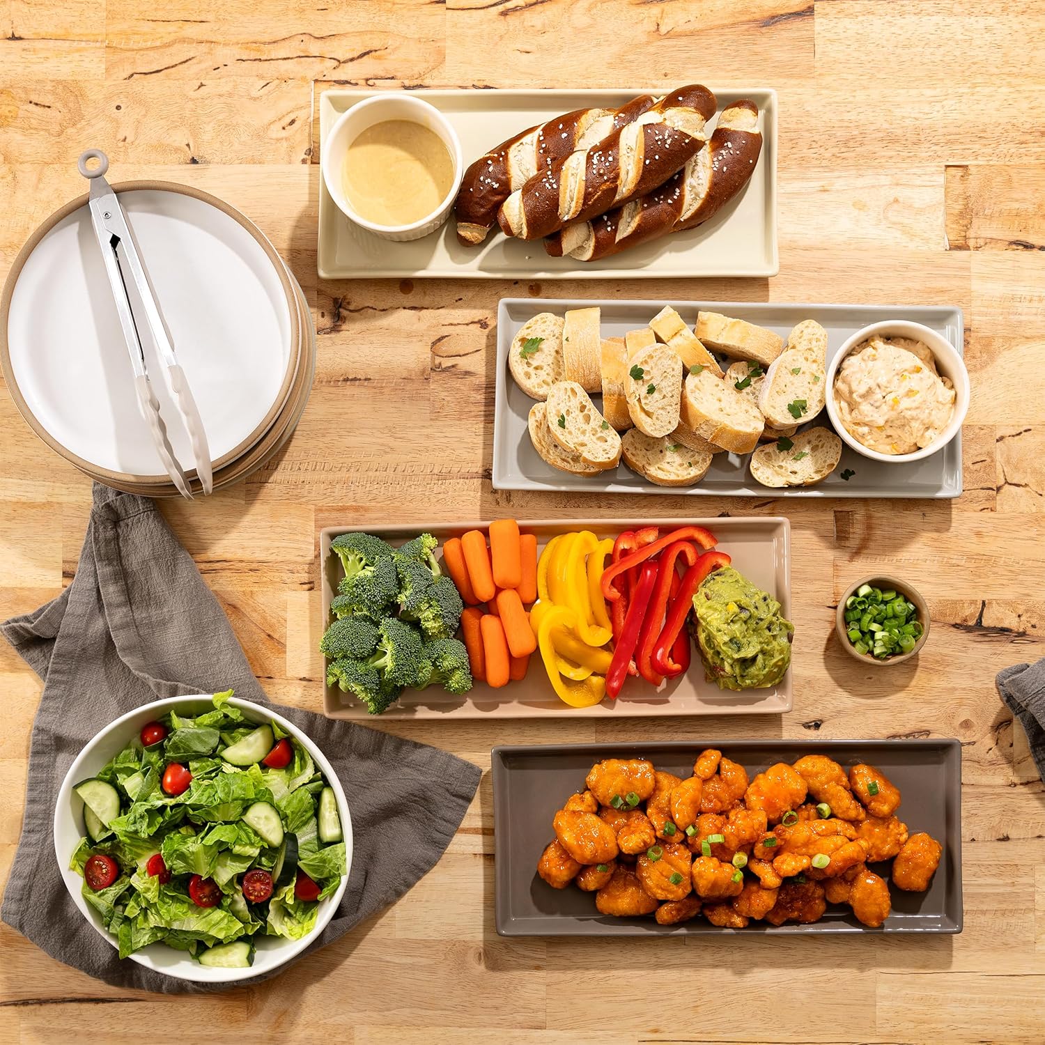 Home Beets Neutral Colored Ceramic Serving Platters (14 x 6 Inch Rectangle Plates) Serving Dishes for Entertaining, Food, Appetizers, Desserts, Cheese Board, Charcuterie, Sushi - Set of 4 Party Trays
