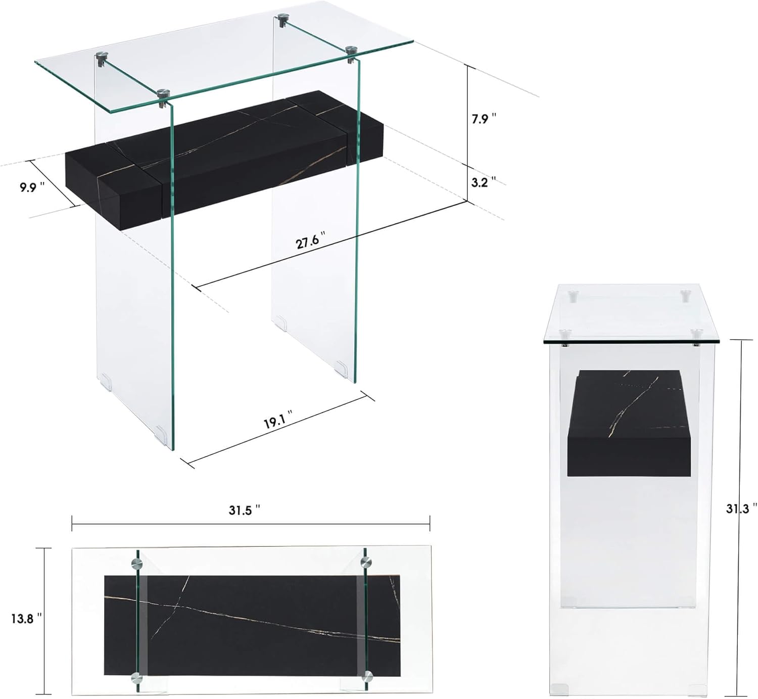 - Multiple-Use Entryway Table: Embellish your entryway, hallway, or living room space with this modern-style glass console table, which can be perfectly used as a sofa table, tv stand, vanity table, couch table, dining table, office desk, or computer desk. Small Console Table Size: 31.5” L*13.8” W* 31.3’’ H