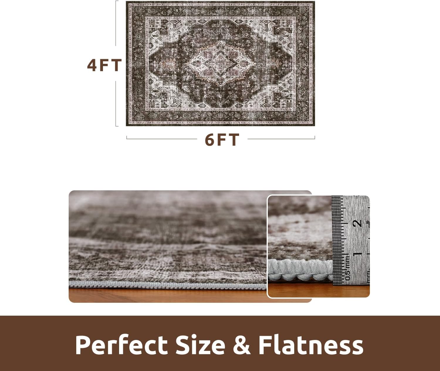 AMOAMI-4X6 Area Rugs for Living Room -Soft Vintage Bedroom Rugs-Non Slip Washable Rug-Throw for Living Room Bedroom Bedside Dining Room Office Brick/Brown