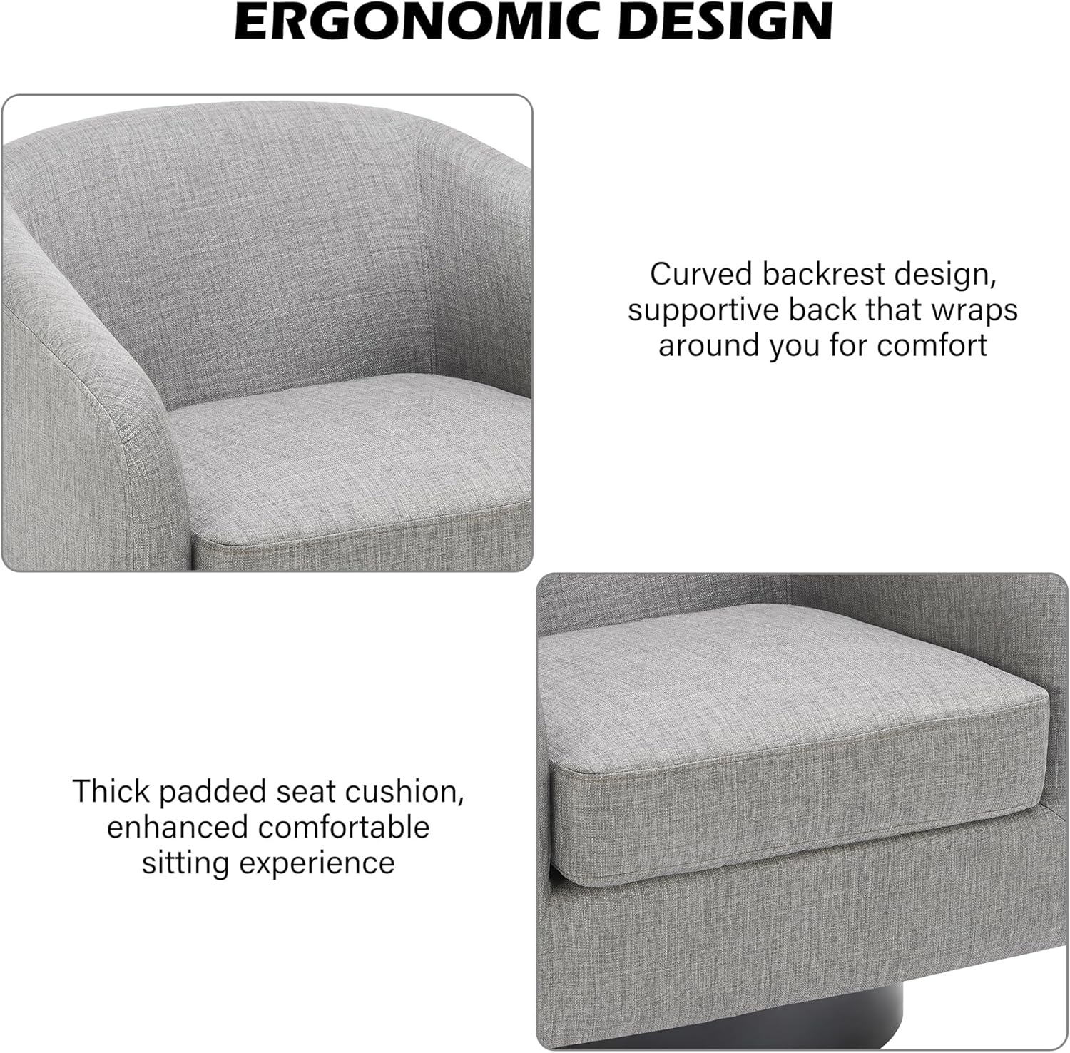 Swivel Barrel Accent Chair, Modern Round Linen Arm Chair for Living Room, Bedroom, Comfy Club Reading Chairs for Adults(Linen Fabric, Light Grey, Set of 1