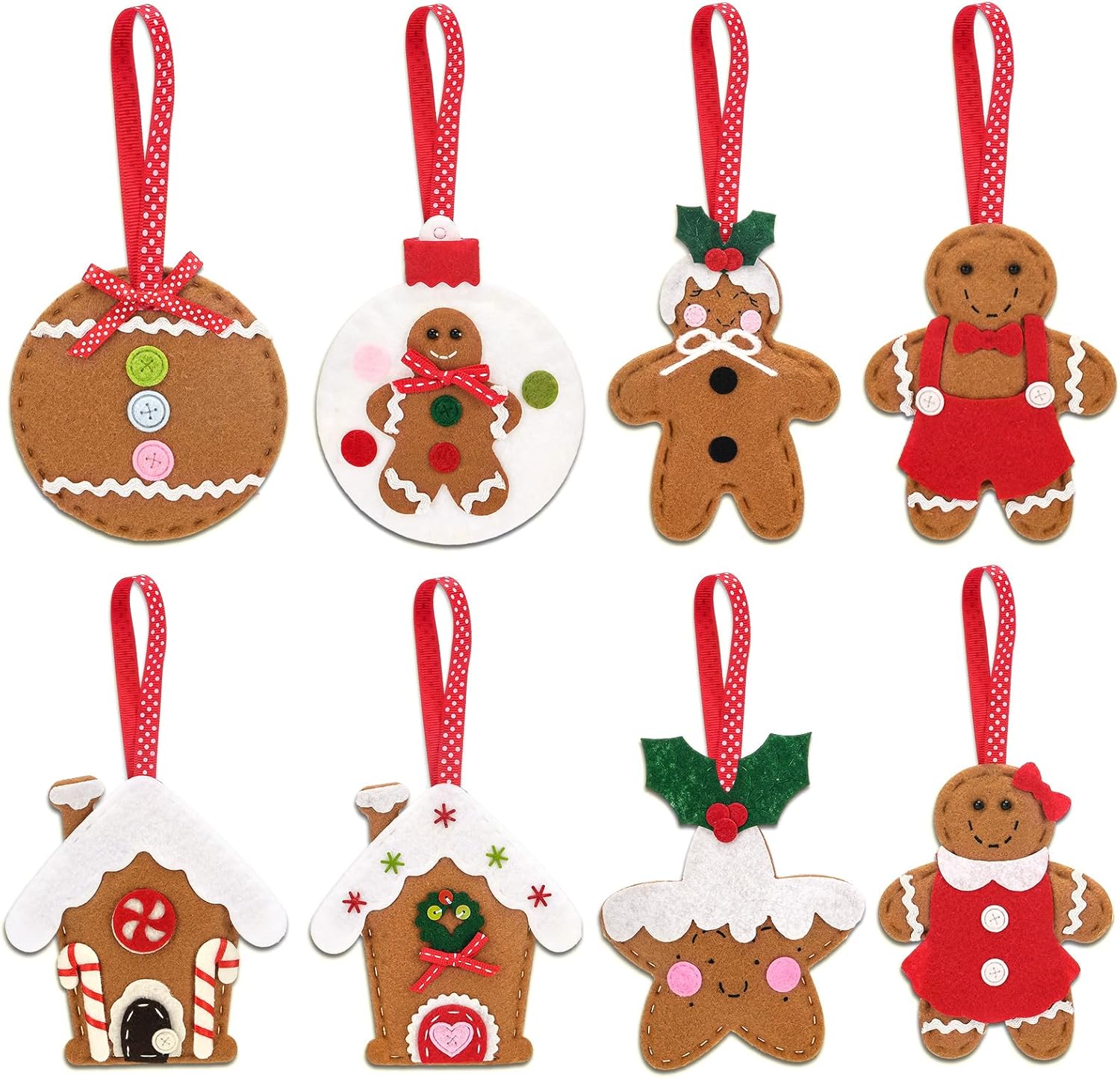 Skylety 8 Pieces 3D Christmas Tree Ornaments Set Felt Santa Snowman Candy Cane Ornament, Stocking, Gnome Decoration(Gingerbread)