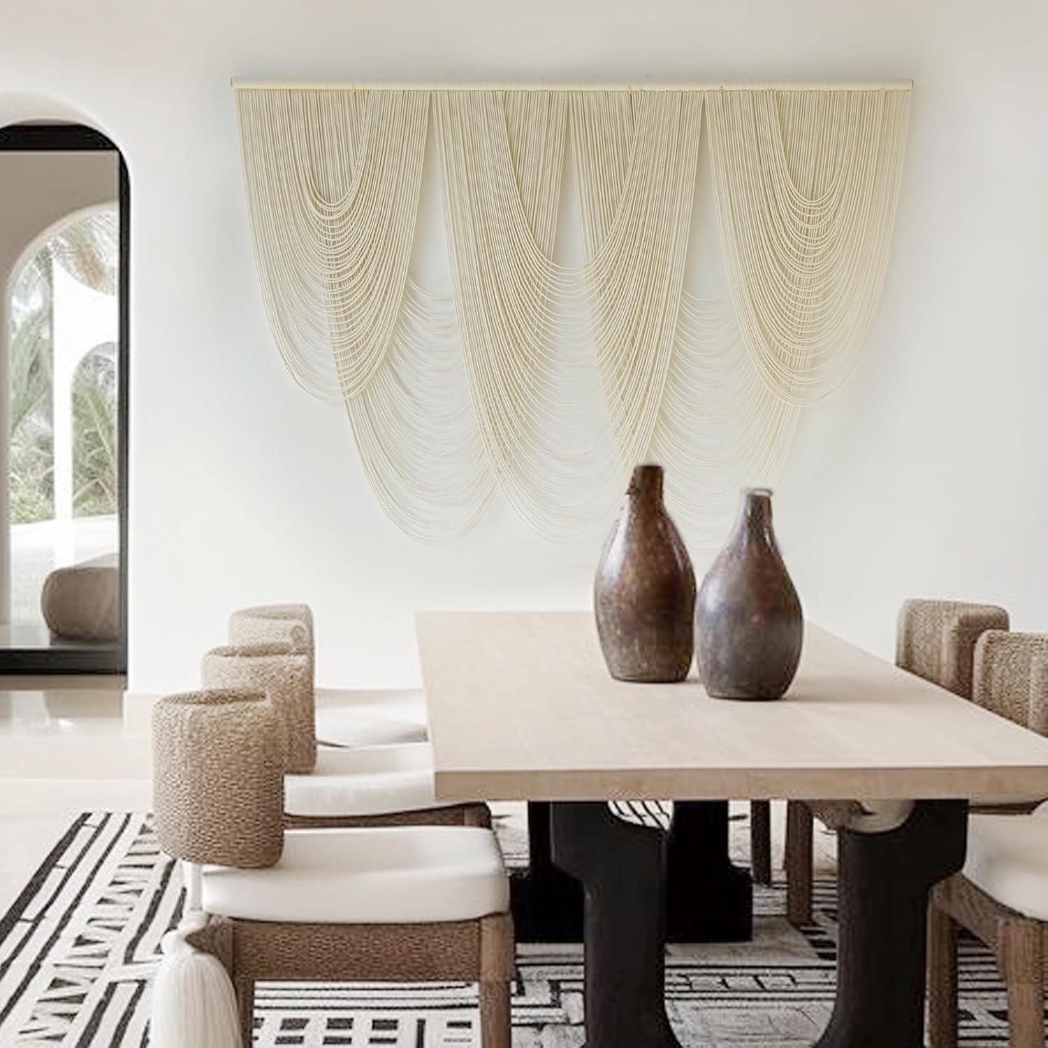 - Note: 1.large macrame wall hanging are handmade, each piece is unique and may vary slightly. 2. Because the wall hanging is packed in a box during transportation, it will bend when hung. You can use a steam iron to iron it, which will help it become straight. Then pick up the stick and shake it to make it bend naturally. 3. If there is an odor after opening it, you can put it in a sunny and ventilated place to dry it, and it will dissipate. You can contact us at any time and we will solve your problem for you.
