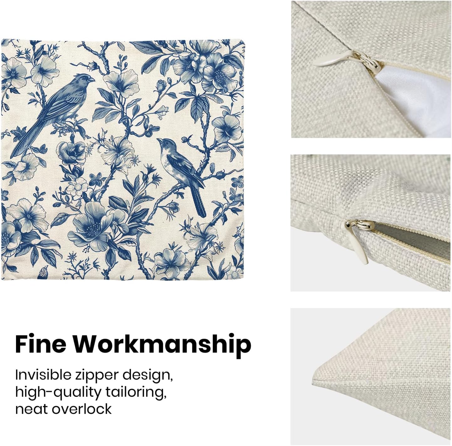 - 【Spring Pillow Covers】 Our Chinoiserie floral throw pillow covers 18x18 inch are made of excellent breathable polyester cotton fabric. The floral decorative pillow covers is sturdy, soft and skin-friendly. The outdoor pillow covers adopt exquisite edging technology and four sides of our floral pillow covers are sewn firmly, which is not easy to open the line.