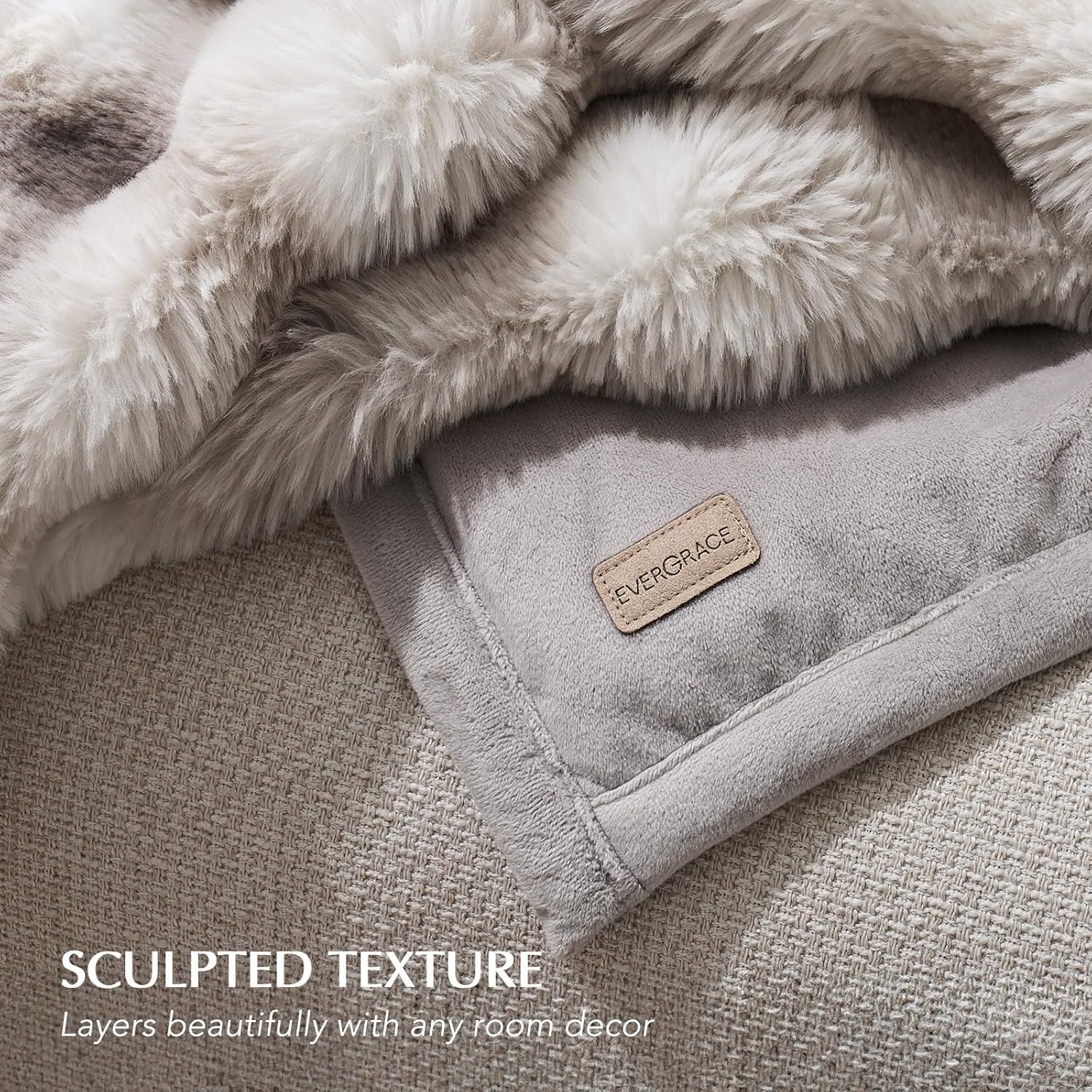 EVERGRACE Ultra Soft Luxury Fluffy Ridgeline Faux Rabbit Fur Throw Blanket, Thick Warm Bubble Throw for Bed, Cozy Plush Reversible Blankets for Couch, Chair, Sofa, Light Grey, 80x90 Inches, 870 GSM