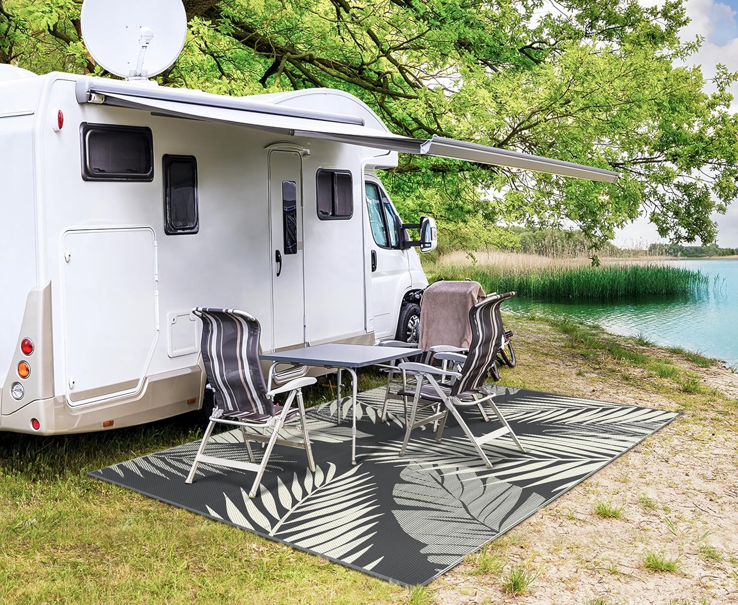 - Perfect Choice For RV Camping: Woven from lightweight plastic straws, these RV outdoor rugs fold compactly to fit in the included carry bag. This portable waterproof outdoor rug is easy to carry, with 4 corner loops and stakes to secure it. Using this camper rug reduces travel fatigue and adds plenty of space for fun — also a stylish touch for fall decor when setting up your campsite