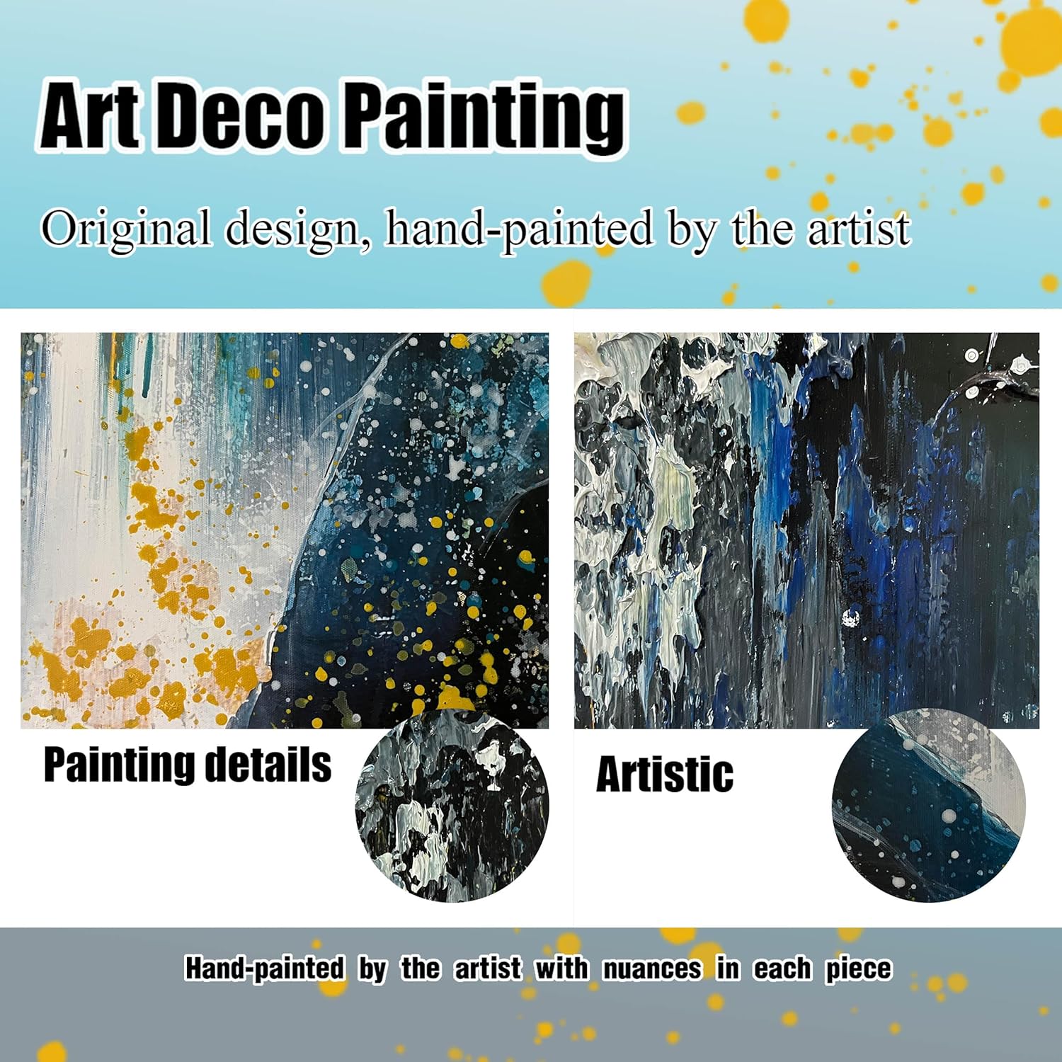 - 【Hand-painted】This is hand-painted by a professional artist. This original painting has a rich texture in the blend of brush strokes and actual colors. It is unique. Therefore the price is also a bit different from the canvas print.