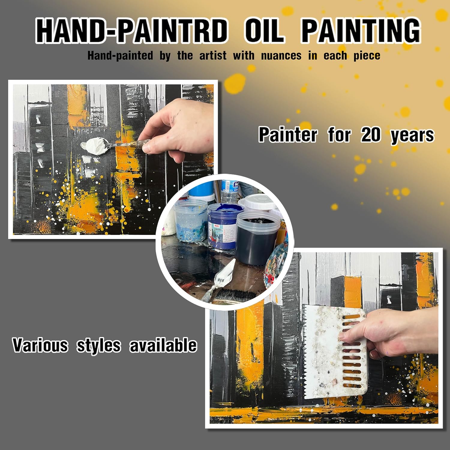 - 【Canvas Mural Size】Titled "City" The size is 59" x 29". Since each painting is hand-painted, the actual painting may differ slightly from the product image. Due to different monitor brands, the actual wall painting color may be slightly different from the product picture.