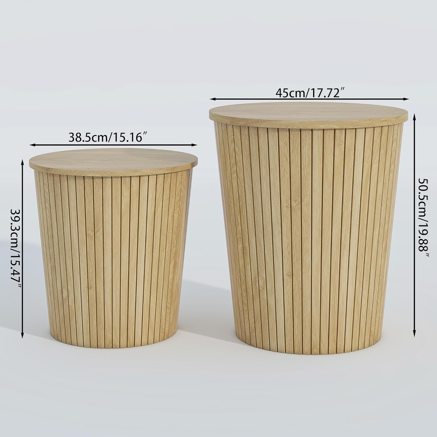 - Multifunctional Living Room Table: Round Coffee Table with Storage includes 2 round tables. The large coffee table measures 17.72''W x 19.88''H, and the small coffee table measures 15.16''W x 15.47''H. The round coffee table is suitable for holding drinks and snacks or placing your favorite books, cushions, blankets, pillows, and can be used as a coffee table, nightstand, side table or end table