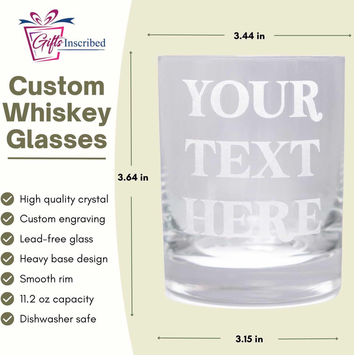 - CUSTOMIZE - laser engraved etching. Select your design and personalize your name, initial, & date to create a one of a kind whiskey gift set. The engraving is permanent and the glasses & decanter are dishwasher safe