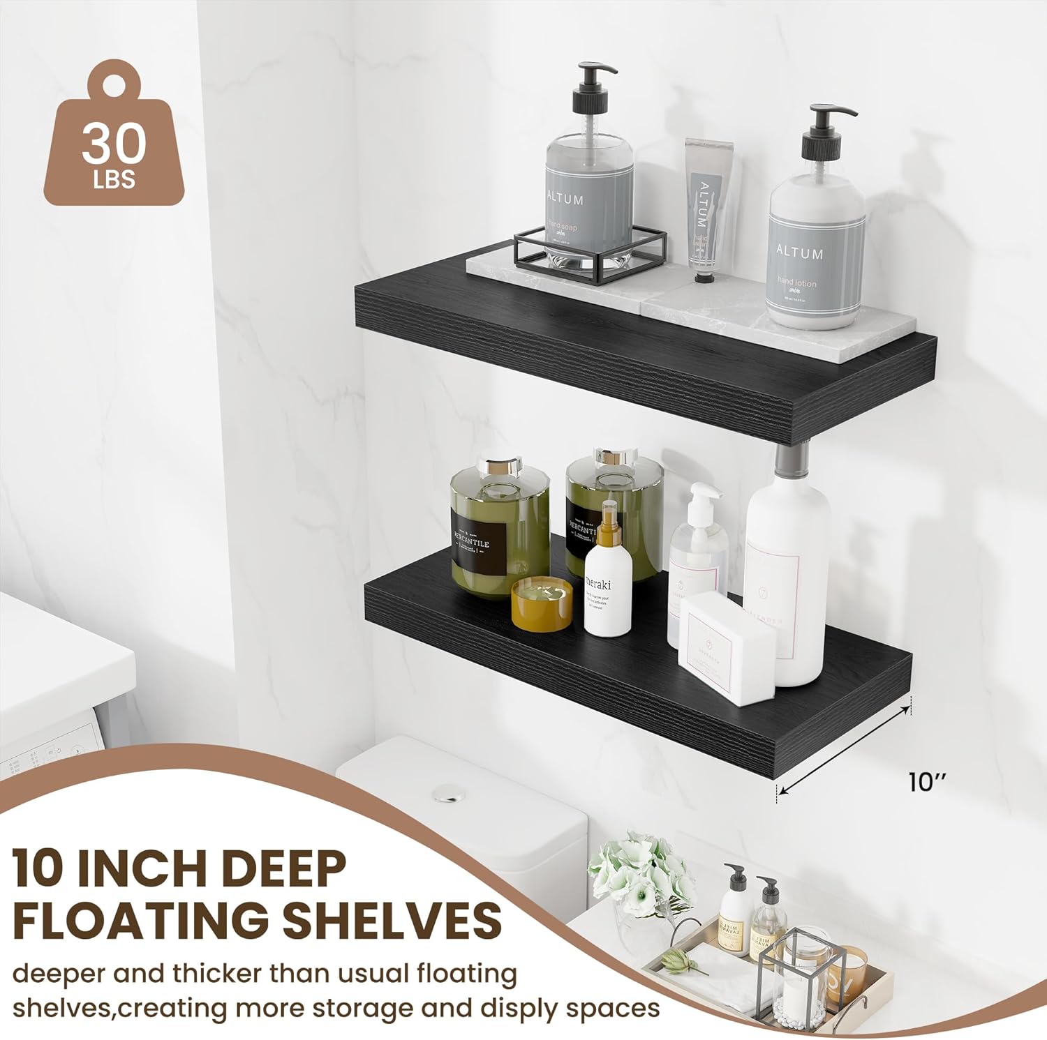 - 10 INCH DEEP: This wall shelf has a 10-inch depth and offers plenty of space to store books, pictures, models, or small plants. Its extra-deep design ensures that your items are displayed neatly while maintaining a clean, organized aesthetic