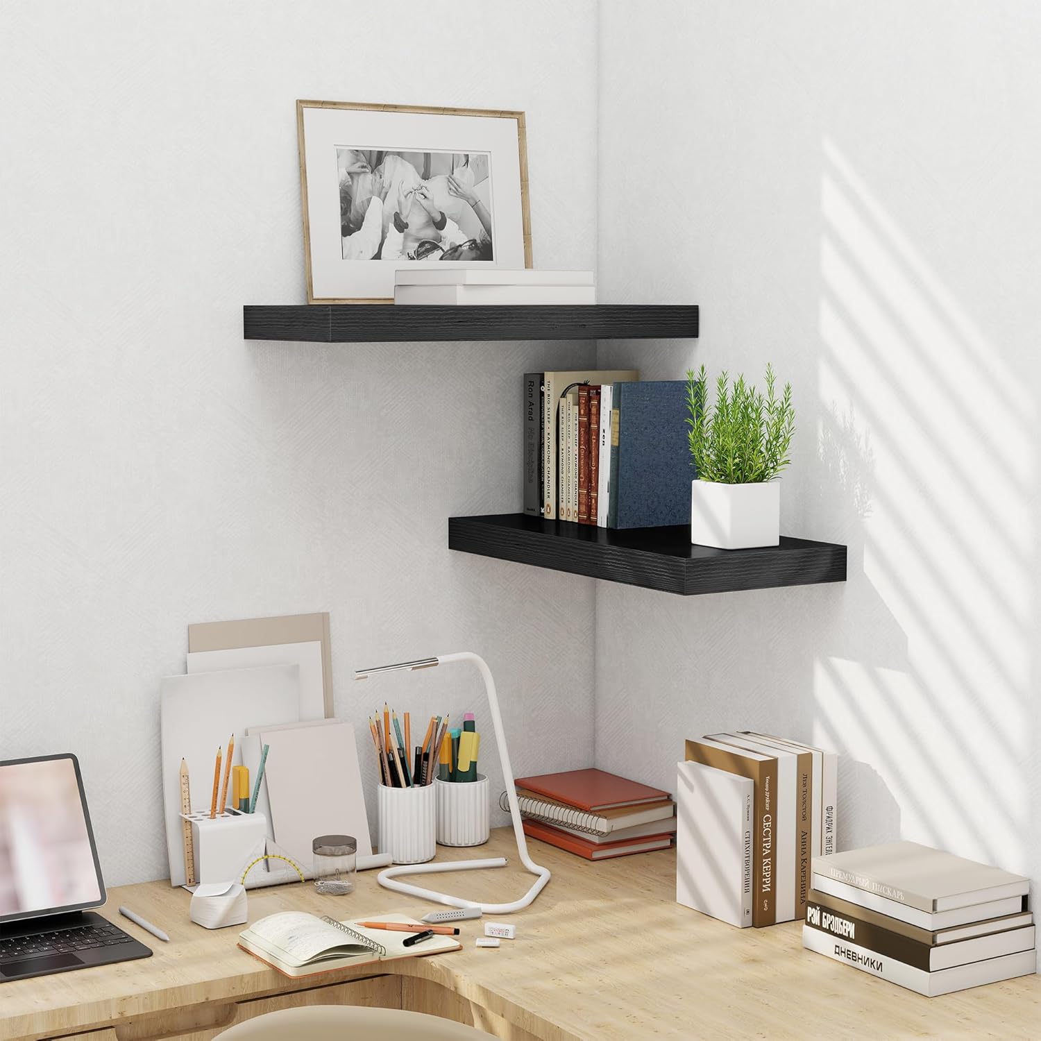- VERSATILE WALL SHELVES: This 24 inches floating shelf is a versatile solution for any room in your home. Whether used in the living room, bedroom, office, or kitchen, it can be styled to suit various purposes, from displaying art to organizing everyday items. Perfect for enhancing any decor