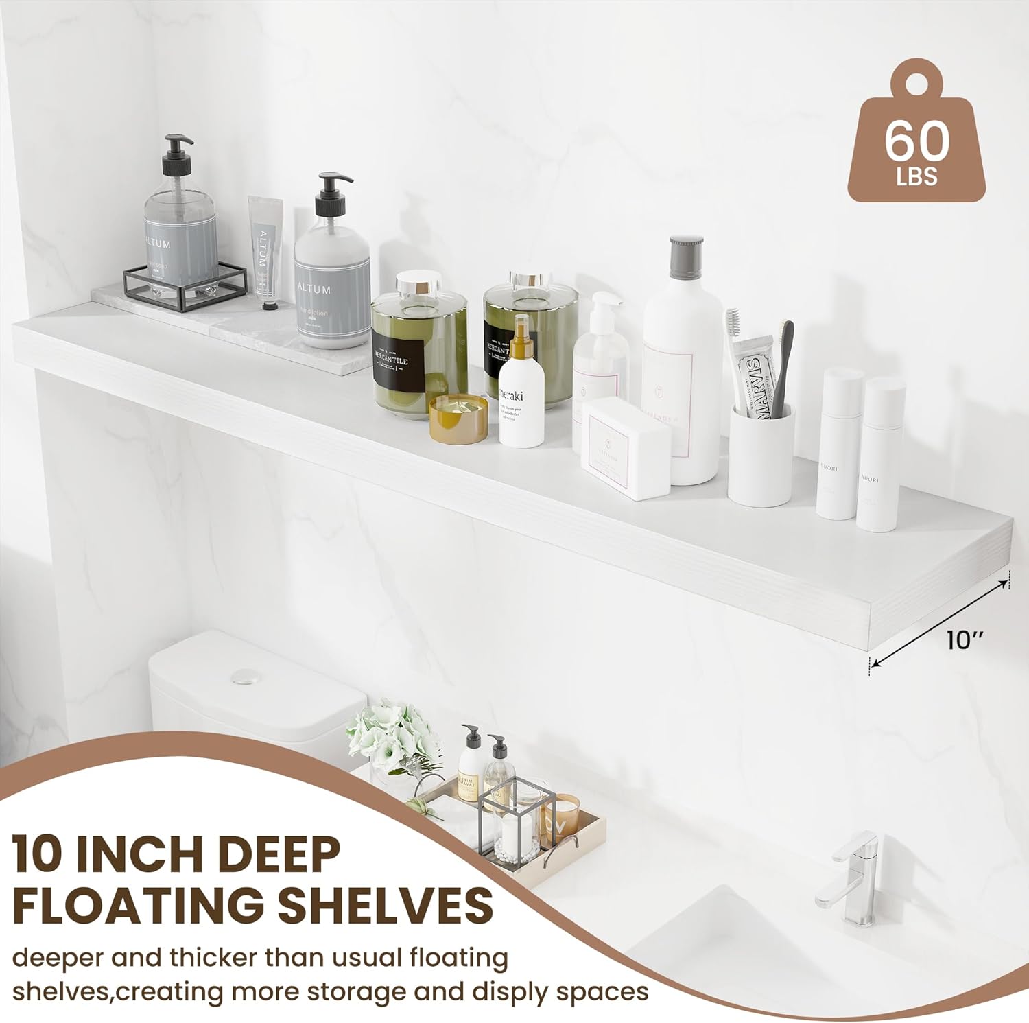 - STYLISH & PRACTICAL: These 10-inch deep floating shelves offer a simple rustic charm and are made from permium engineered wood. With their smooth, natural finish, they add warmth and personality to any room, fitting seamlessly into both modern and classic interiors