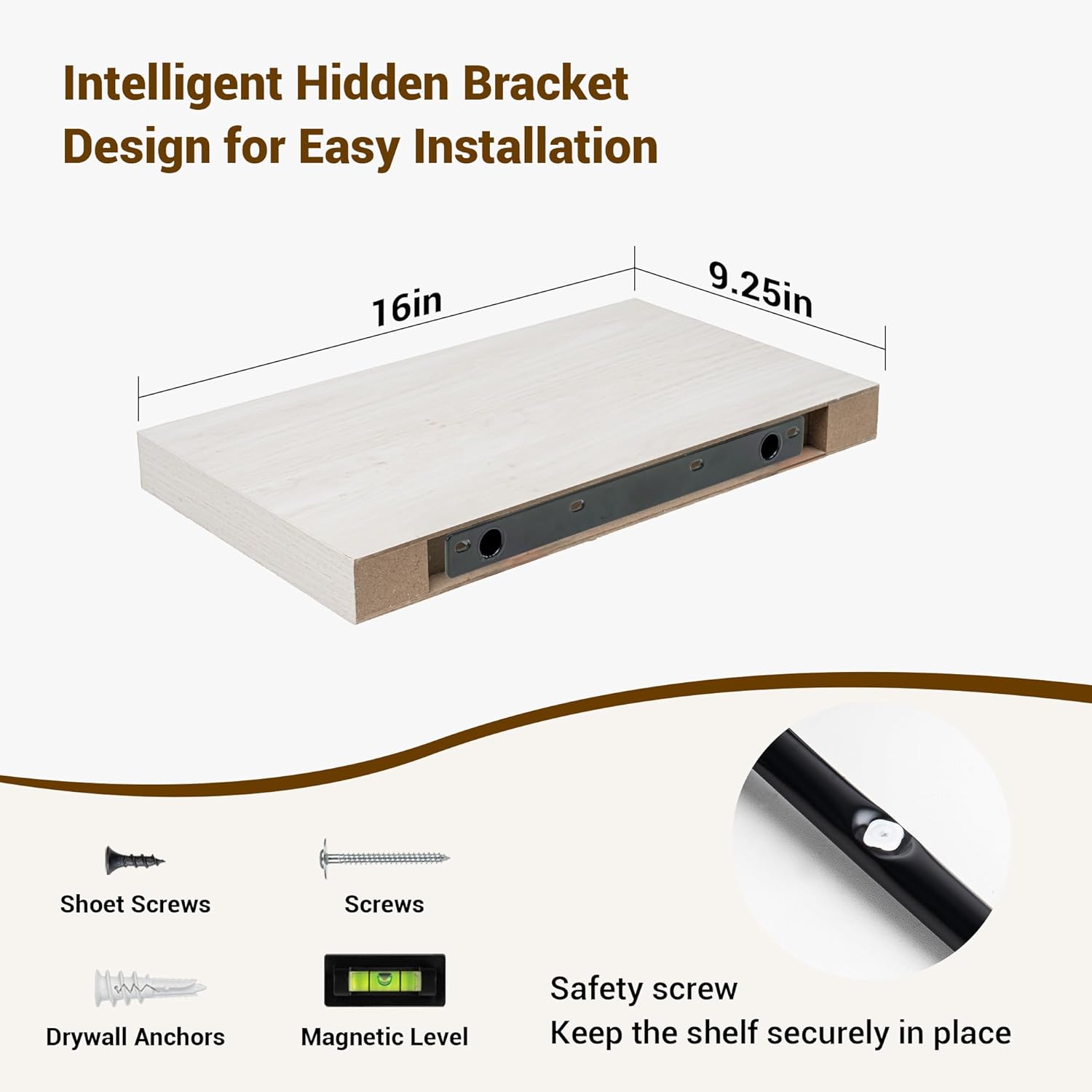 16 Inch Floating Shelves, 16"x9.25"x1.5" Inch Deep Floating Shelves for Wall, Wooden Shelves for Bathroom, Bedroom, Living Room, Cream White Oak