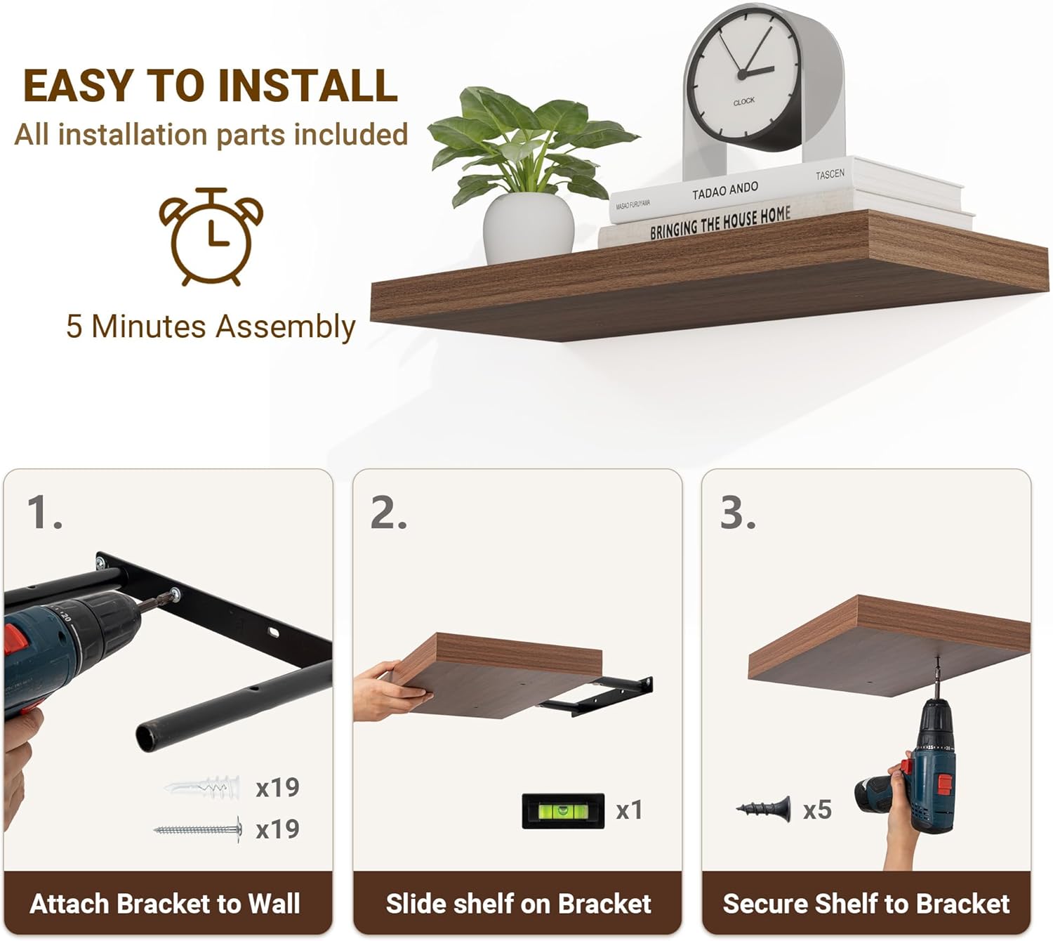 - 【Easy Installation】Designed with user convenience in mind, these shelves come with all necessary mounting hardware and clear instructions. You can have them up and ready to use in less than 5 minutes. Plus, our customer service is always ready to assist with any queries or concerns, ensuring a hassle-free experience