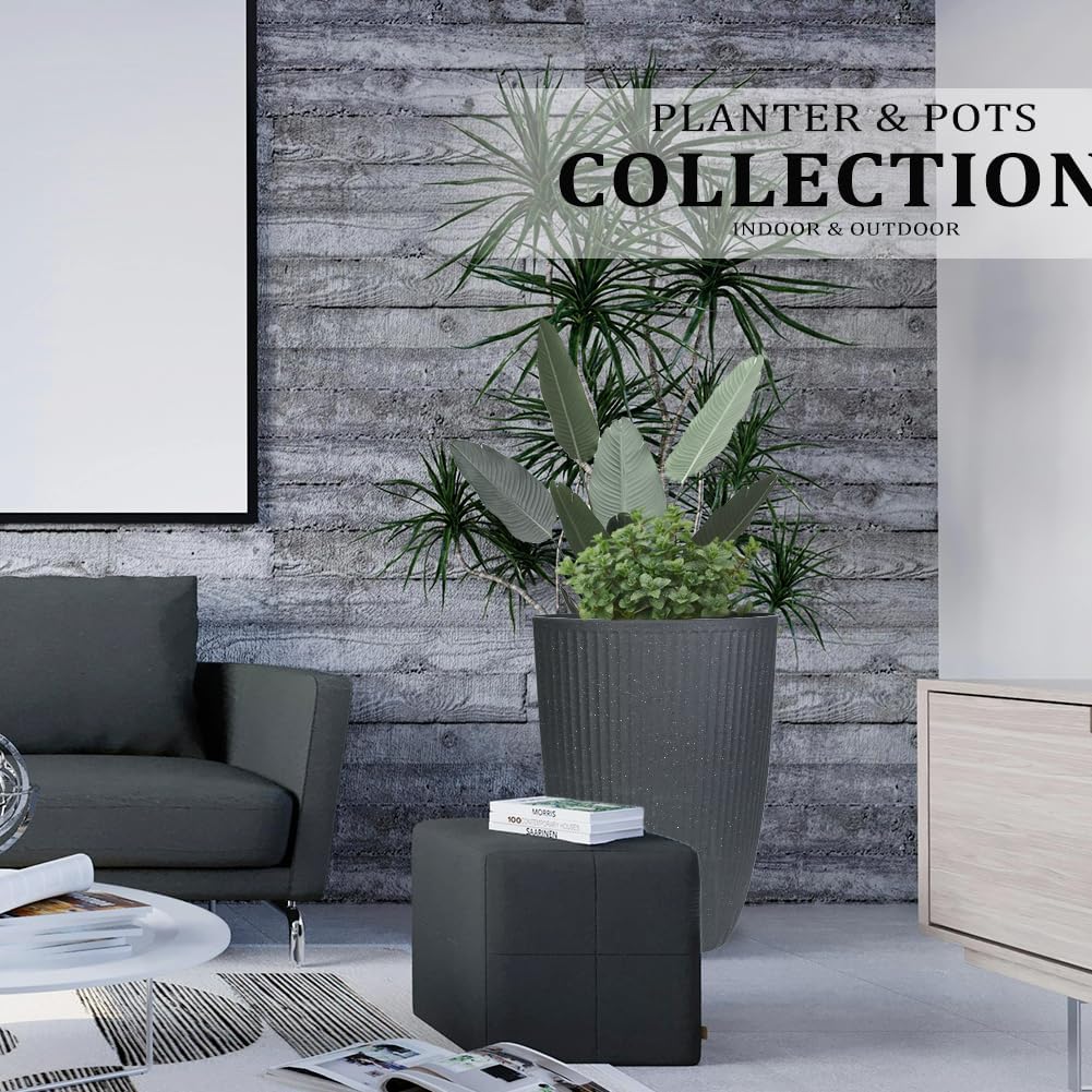 - FLUTED DESIGN β The special modern and stylish design of these tall square planter flower boxes is super for large outdoor and indoor plants, herbs and flowers at home, office, hotel, resrestaurants etc. Ideal for any front entrance, poolside, patio, or spacious hallway, porch, deck, backyard
