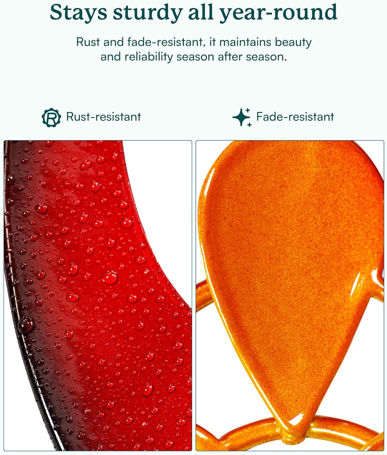 - Durable & Stable Garden Decor: The coating on the metal surface is rust and fade-resistant, ensuring long-term use. The thicker pole and solid 3-prong stake work together to provide four points of support, ensuring enhanced stability. It can better withstand high winds and resist bending.