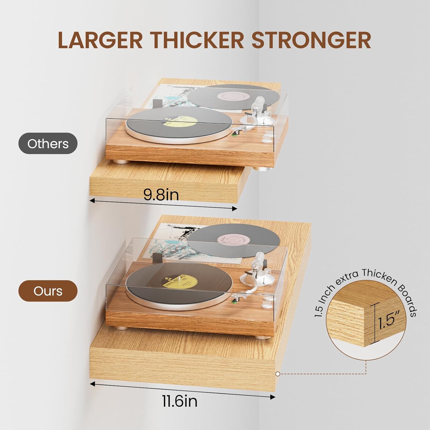 - Extra Deep Floating Shelves: Measuring 11.6” D x 23.6” W x 1.5” H, these shelves are crafted for maximum depth and durability. The spacious 12” depth gives you plenty of room for stylish display, organized storage, and decorative accents. Perfectly suited for your bathroom, kitchen, or living room, they enhance both function and flair in any space!