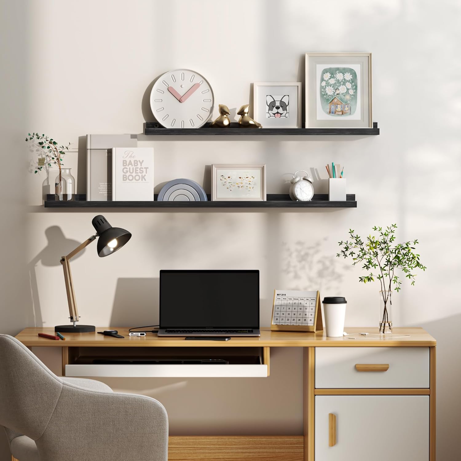 • Quick and Easy Installation: With pre-drilled holes, necessary hardware, and easy-to-follow instructions, our picture ledge shelves are a breeze to install. Each set even comes with a mini level for perfect alignment. Put them up in minutes and start decorating right away!
