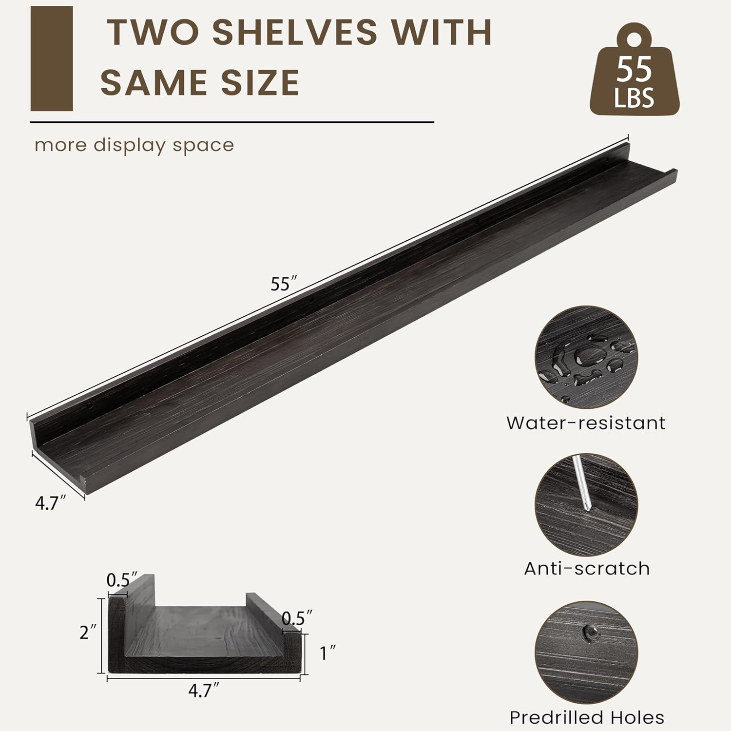 Floating Shelves for Wall, Picture Ledge Shelf 55 Inch Solid Wood Set of 2, Rustic Wall Shelves with Lip, Kids Bookshelf, Photo & Picture Live Edge Floating Shelves for Bedroom, Living Room, Kitchen