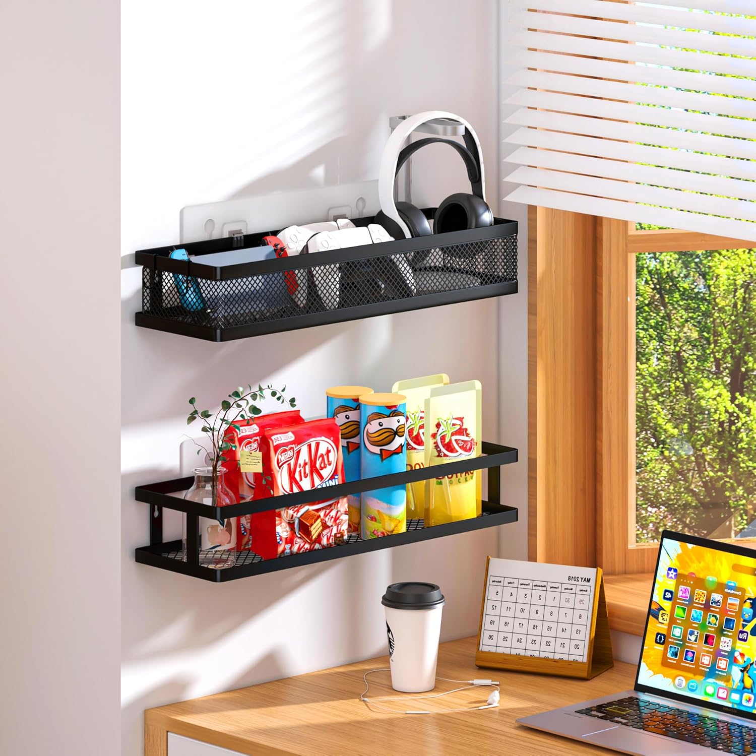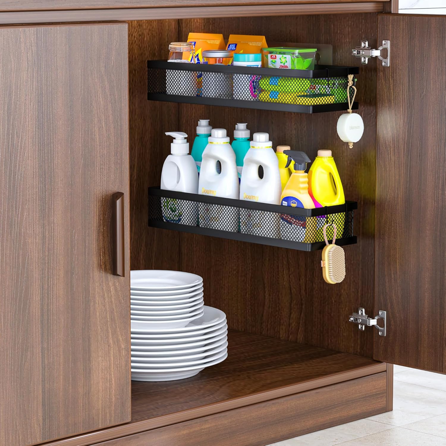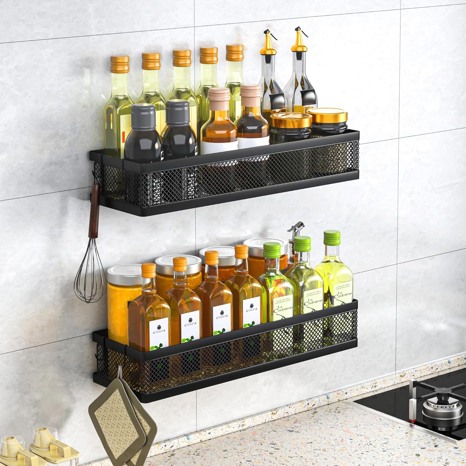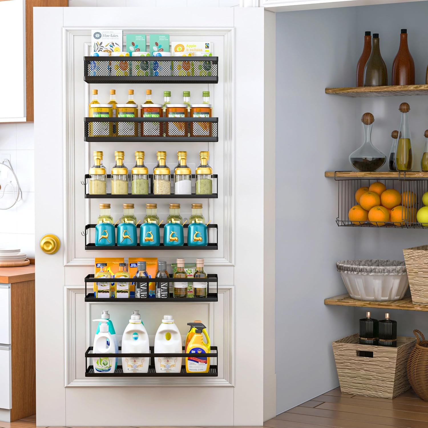 - 【MULTI-PURPOSE&MULTIFUNCTIONAL】The perfect solution for organizing a multitude of every items indoor or outdoor. The cabinet organizer hanging baskets wall mount is Ideal for organizing and storing spice bottles, pantry items, snacks, toiletries, tools, craft supplies,etc. And this metal bin basket free up enough space for your homes, kitchen, living room, bathroom, camper, farmhouse, apartments, college dorm rooms, etc.