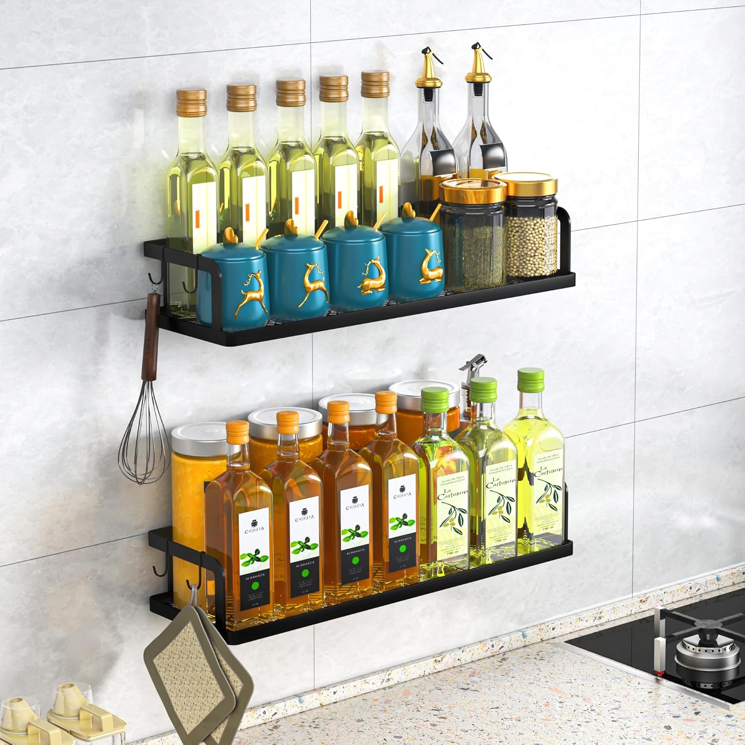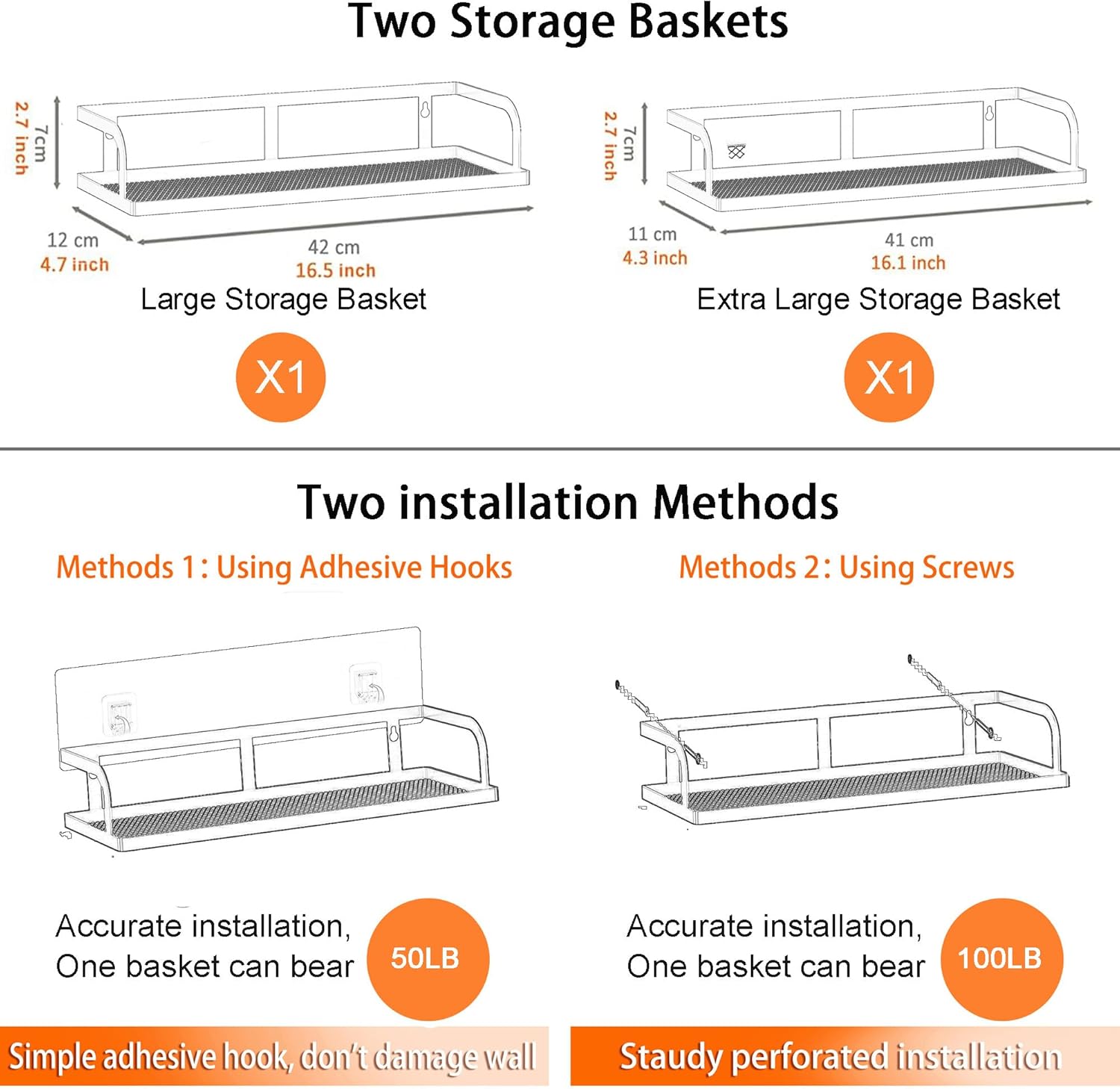PUSDON Metal Wall Hanging Basket 2 Packs DIY Suitable for Multiple Scenes - Large Black Hollowout