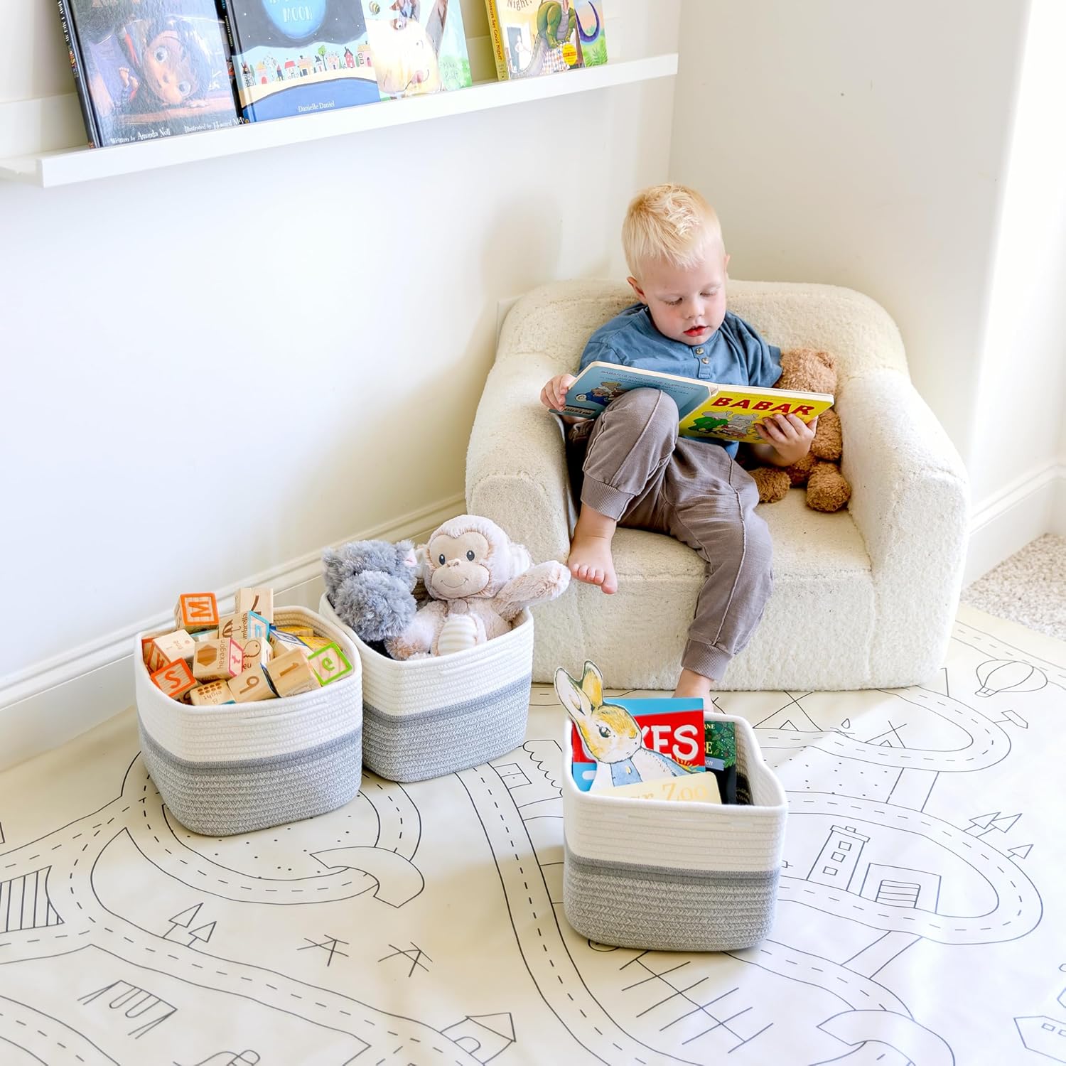 - Safe, Natural Cotton Organizer Bins: Crafted from the highest quality material in the market, our storage bins are oh-so-sturdy (and cute) and ready to take on little humans. They’re 100% safe, so you can rest easy if teething toddlers take a nibble.