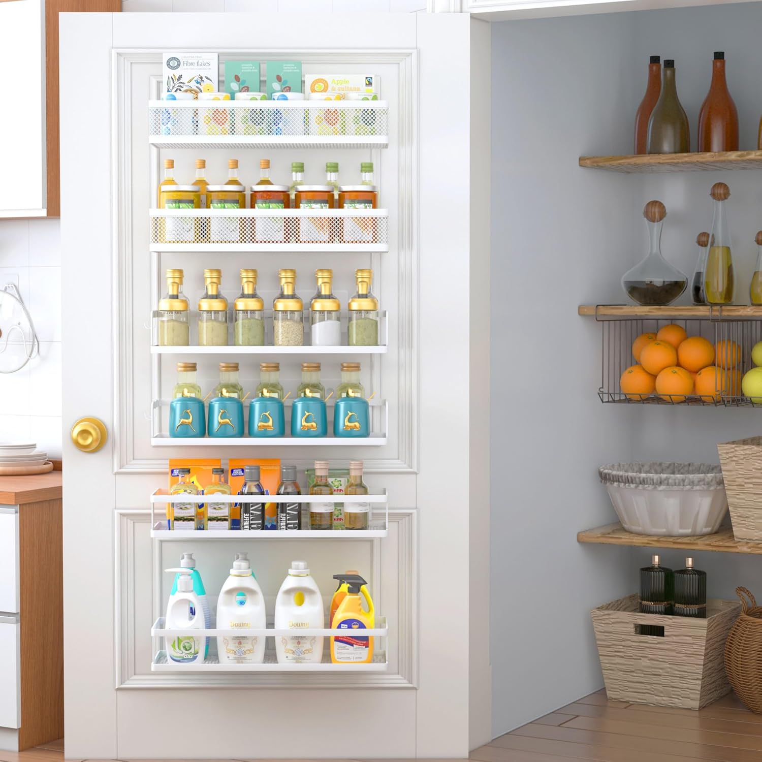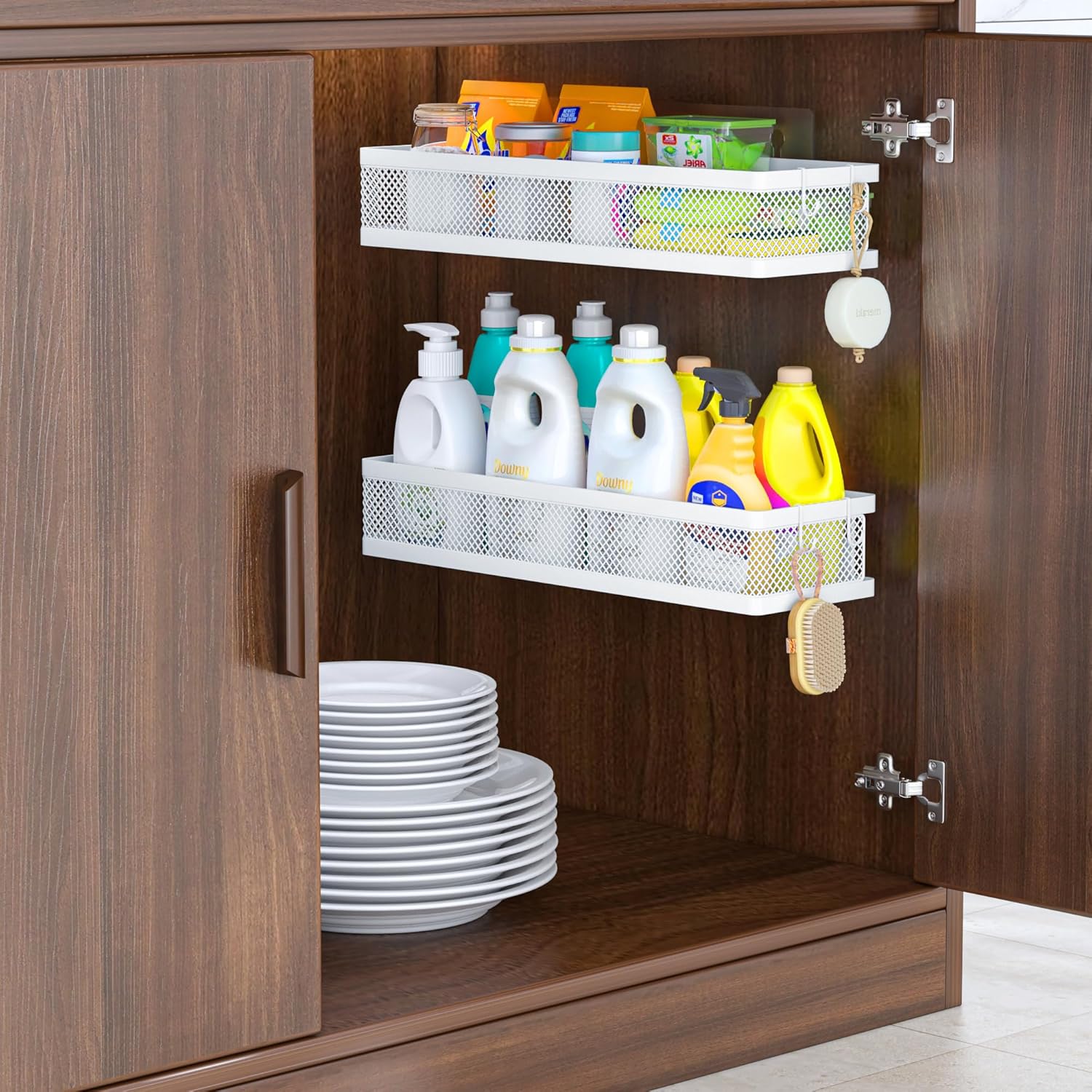 - 【MULTI-PURPOSE&MULTIFUNCTIONAL】The perfect solution for organizing a multitude of every items indoor or outdoor. The cabinet organizer hanging baskets wall mount is Ideal for organizing and storing spice bottles, pantry items, snacks, toiletries, tools, craft supplies,etc. And this metal bin basket free up enough space for your homes, kitchen, living room, bathroom, camper, farmhouse, apartments, college dorm rooms, etc.