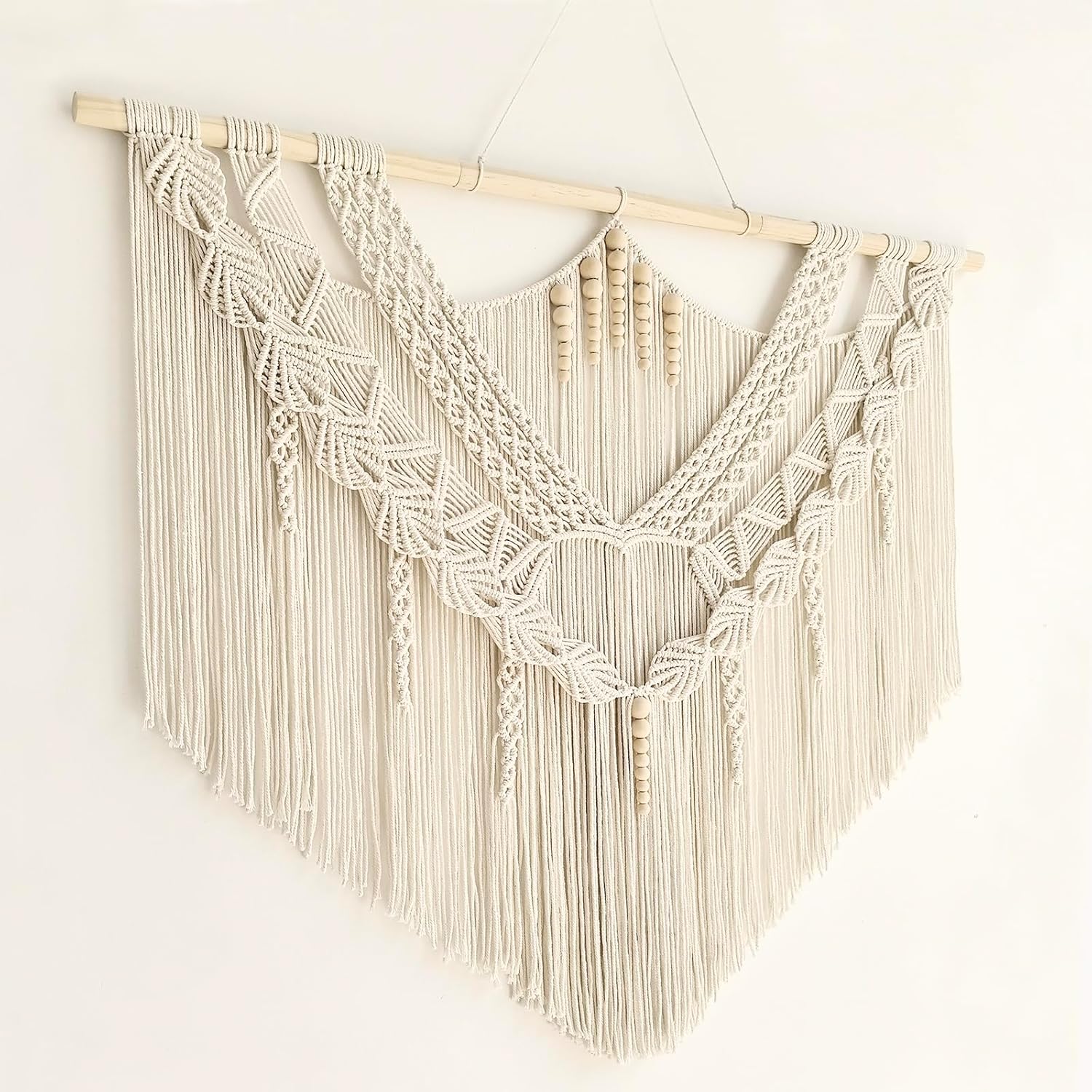 Achart Macrame Wall Hanging Large- Boho Wall Decor- large wall art- Wall Decor Living Room- Macrame Tapestry Boho Decor for Bedroom (Leaf &Wood Bead)