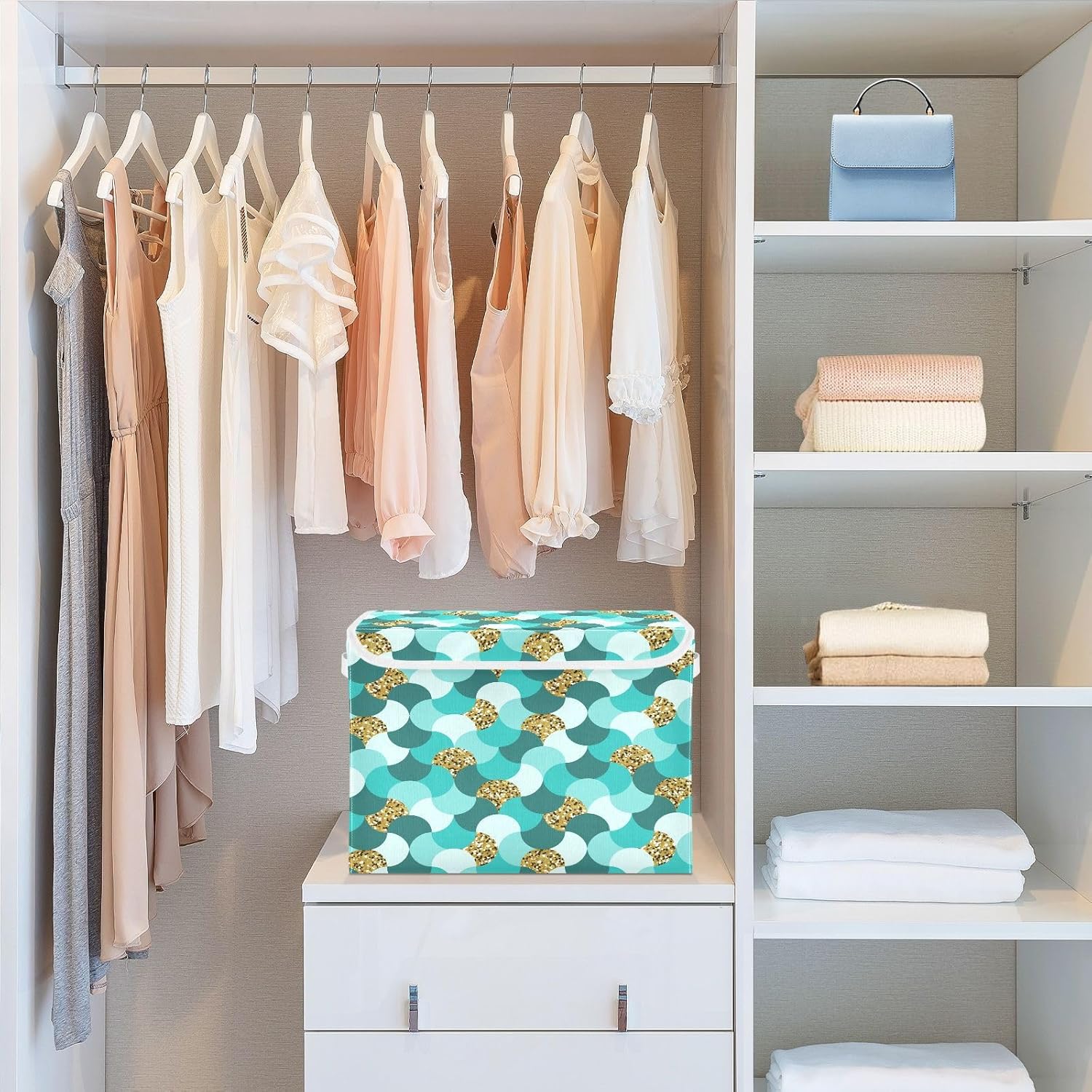 susiyo Abstract Sand Sea Waves fabric storage baskets with lids,Collapsible Storage Boxes,Foldable storage boxes with handles for Home,Office,Closet Organization