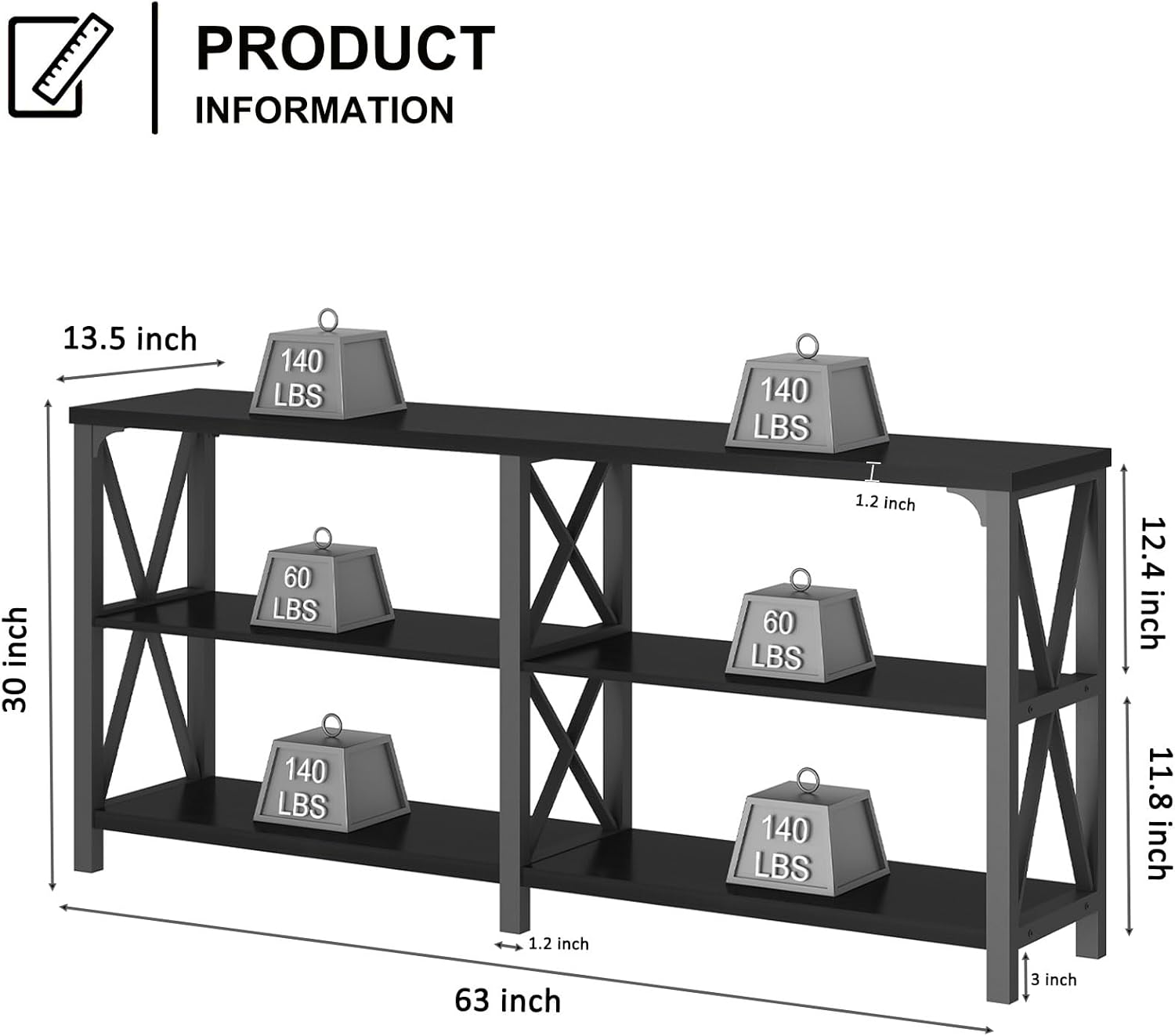 - Product Dimensions : 13.5"D x 63"W x 30"H