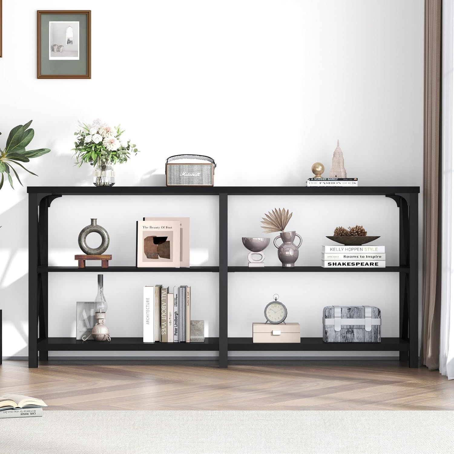 - Spacious Size: This modern long sofa table boasts a generous 63 inch, offering abundant usable space for your needs. With such a sizable tabletop, you can effortlessly organize and showcase various items, enhancing the practicality, comfort, and aesthetics of your home.