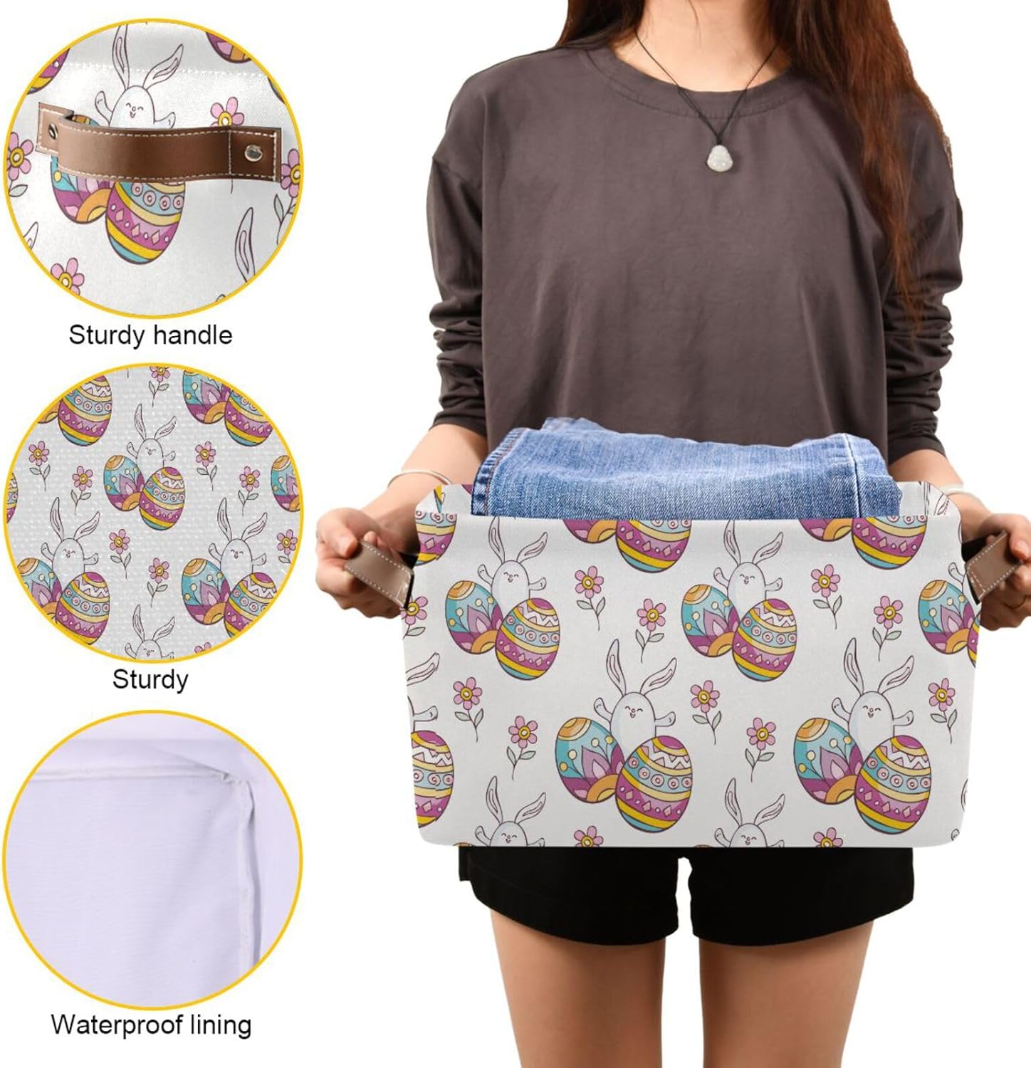 susiyo Easter Storage Basket with Handles, Cute Easter Rabbit Egg Large Foldable Fabric Collapsible Storage Bins Organizer Bag for Storage 2PACK