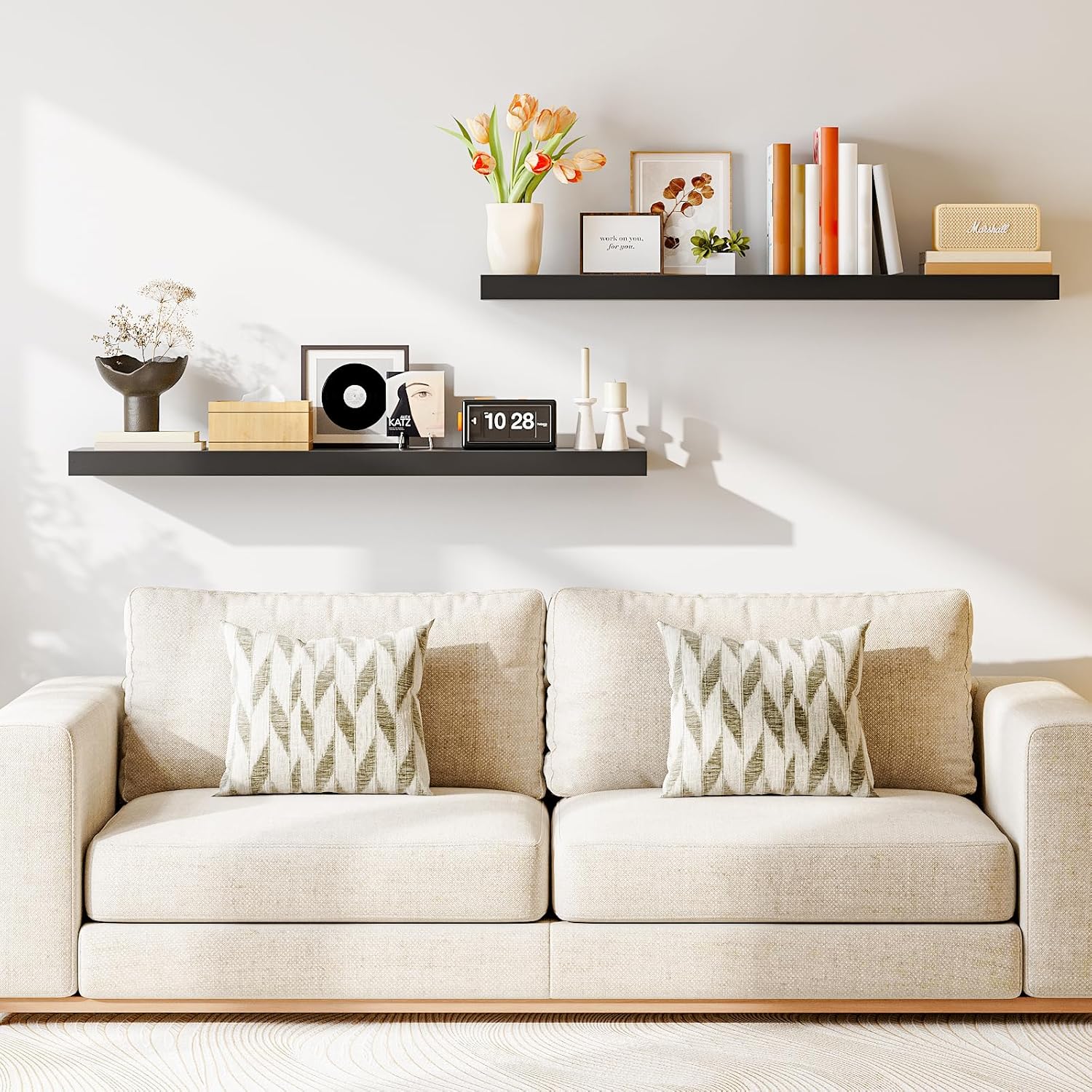 - Exquisite Wall Surface Decoration: Two classic and elegant black wooden shelves can be placed on each wall surface of all household rooms. This floating shelf for room wall is not only for its decoration effect, but also for this wall shelves high practicality. It is an ideal place to display your beloved photos, trophies and other delicate ecorations