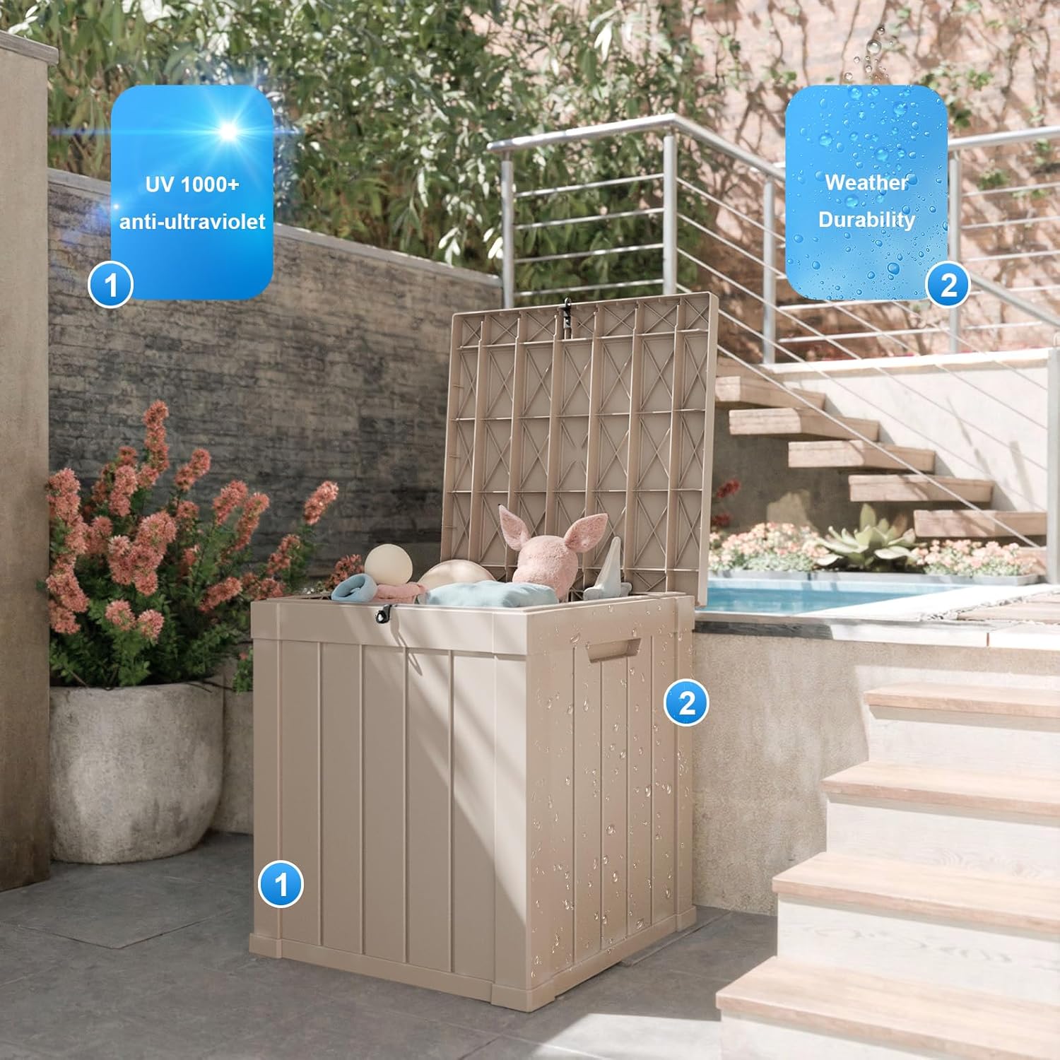 - PRODUCT DIMENSIONS: This 50-gallon deck storage box, measuring 22.14''L x 22.14''W x 24.2''H and weighing 7.72 lbs, can bear a load of up to 200 lbs. It's the perfect solution for storing small items