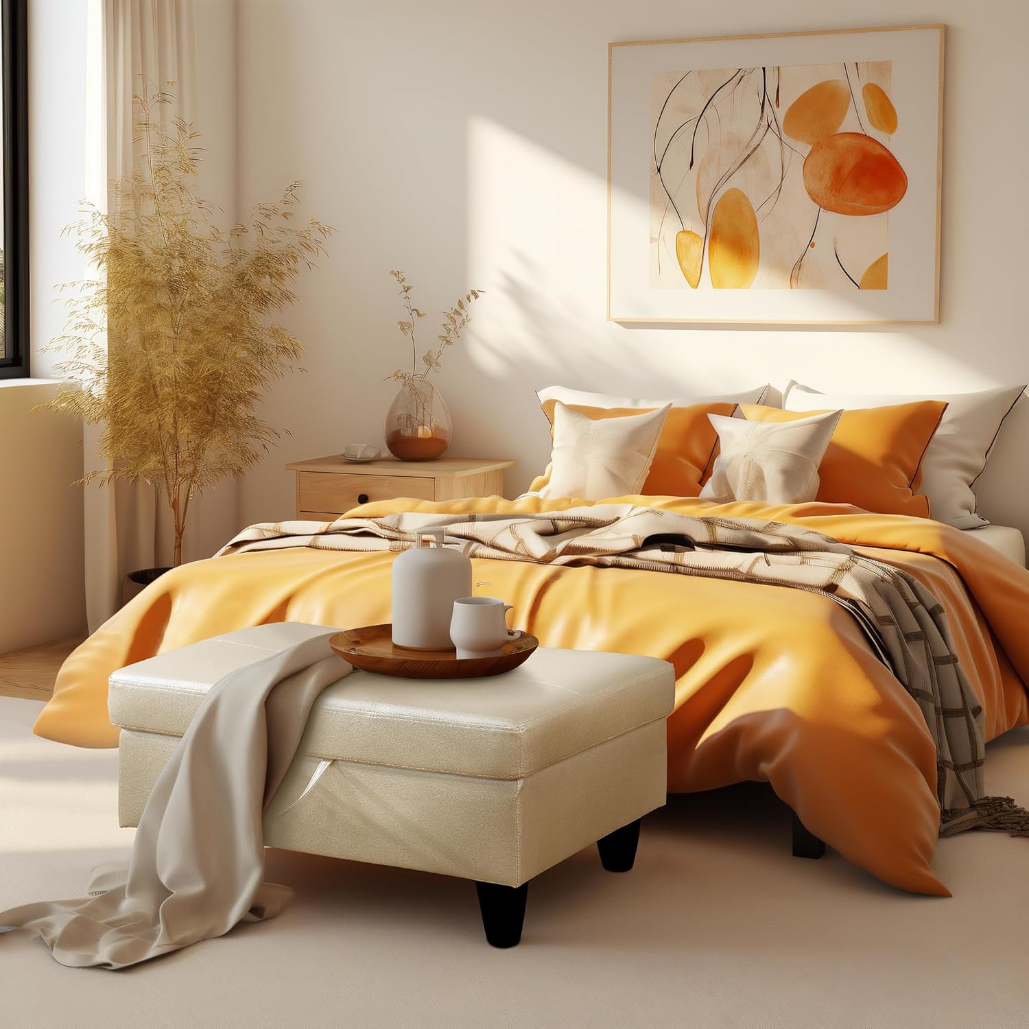 - MULTIFUNCTIONAL OTTOMAN: This ottoman is a perfect fit for multiple spaces, whether it’s your bedroom, living room, entryway, or hallway. It offers versatile use as an entryway bench, footrest, coffee table, or extra seating, making it a stylish and practical addition to any home. Ideal for small spaces, this ottoman enhances both functionality and décor.