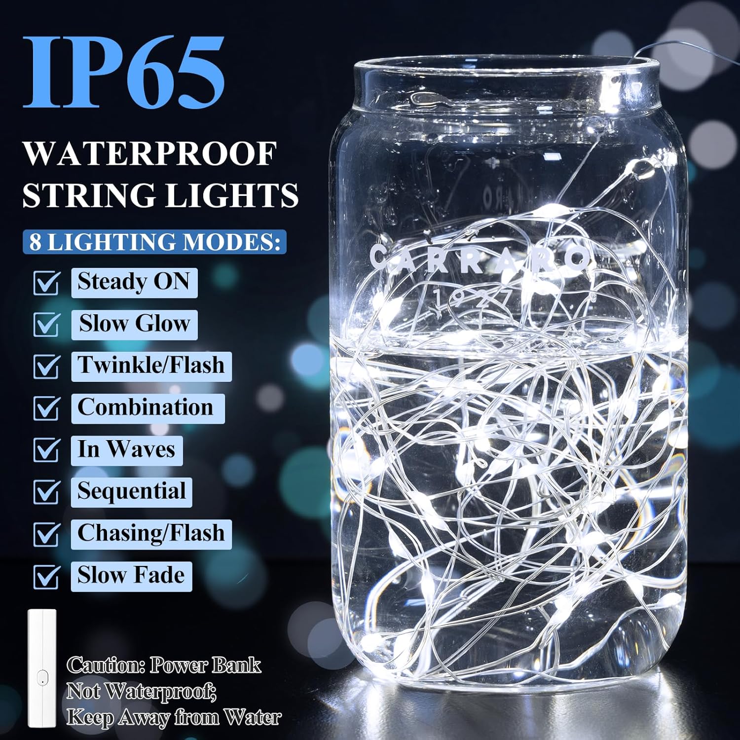 - Tangle-Free & Water-Resistant: Say goodbye to messy wires! These IP65-rated mini fairy lights feature tangle-free reinforced wiring that withstands humidity, perfect for mason jars and indoor plants. Built to last, they outshine ordinary battery string lights. Note: the included power bank is not waterproofโkeep it dry for safe use