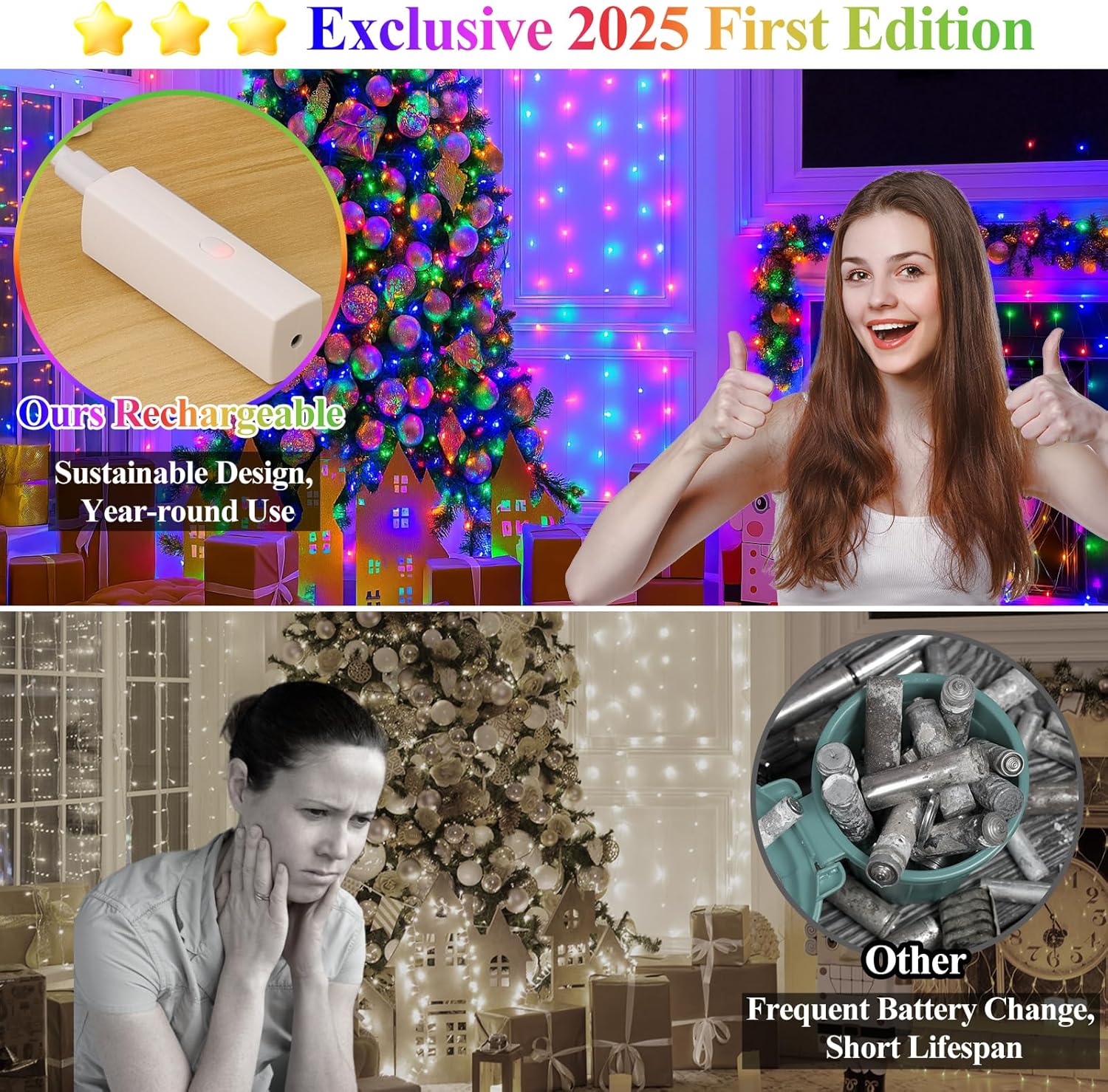 - 2025 Specially Developed Battery Fairy Lights: Say goodbye to disposable batteries and embrace sustainability! Our rechargeable Type-C power bank (cable included) powers the string lights for 30+ hours of cordless glow. When itโs time to recharge, simply detach the compact, lipstick-sized power bankโno need to move the entire string lights. Designed with an innovative, patented structure, this power bank offers a smarter, greener way to shine