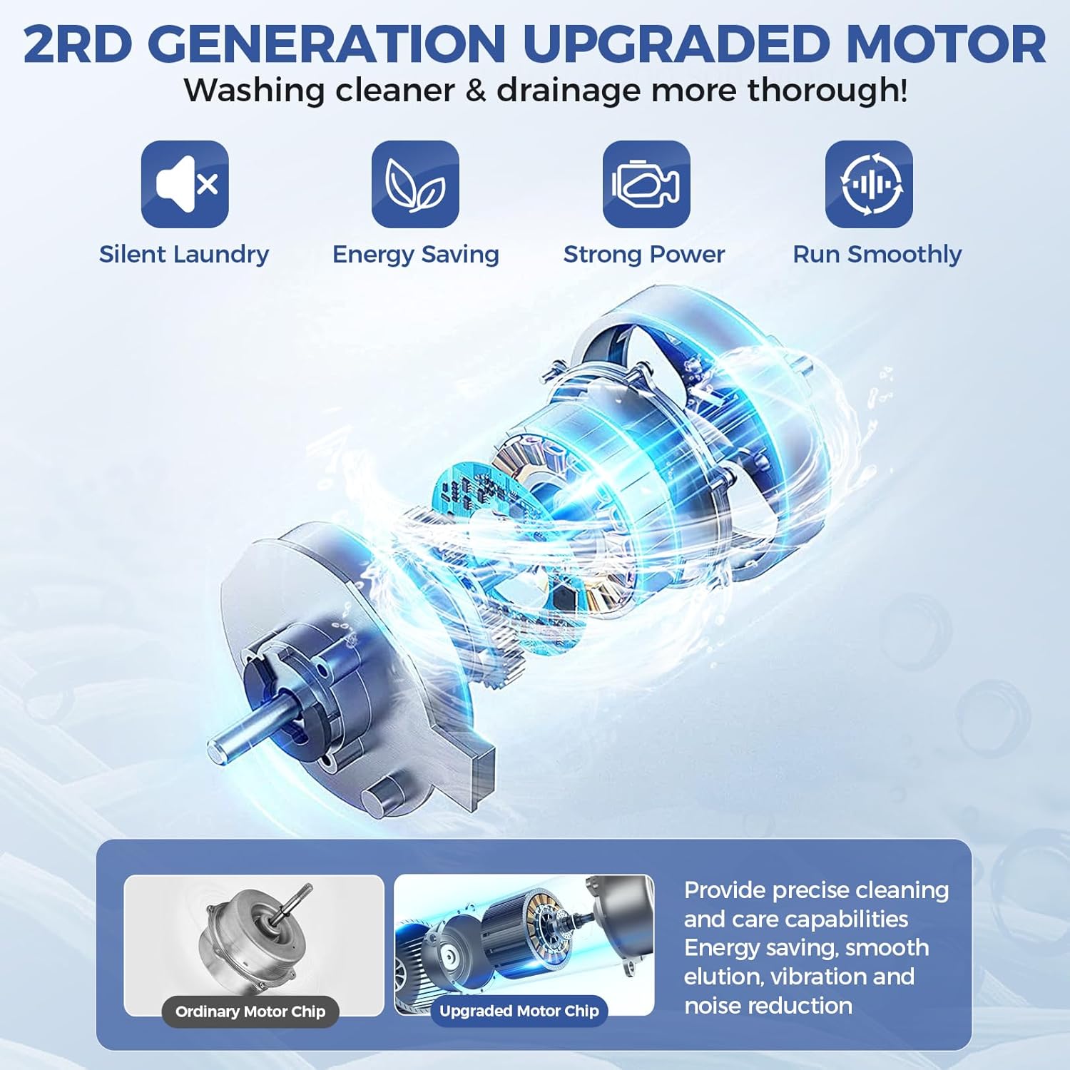 - [Durable Motor & Drain Pump]--With the powerful performance built-in drain pump and upgraded extended drain hose can easily drain sewage from the washer to low or high places. We also have a faucet adapter for easy installation of water hoses. And the latest high-quality motor provides constant and smooth power to easily spin dry up to 95% of the water.