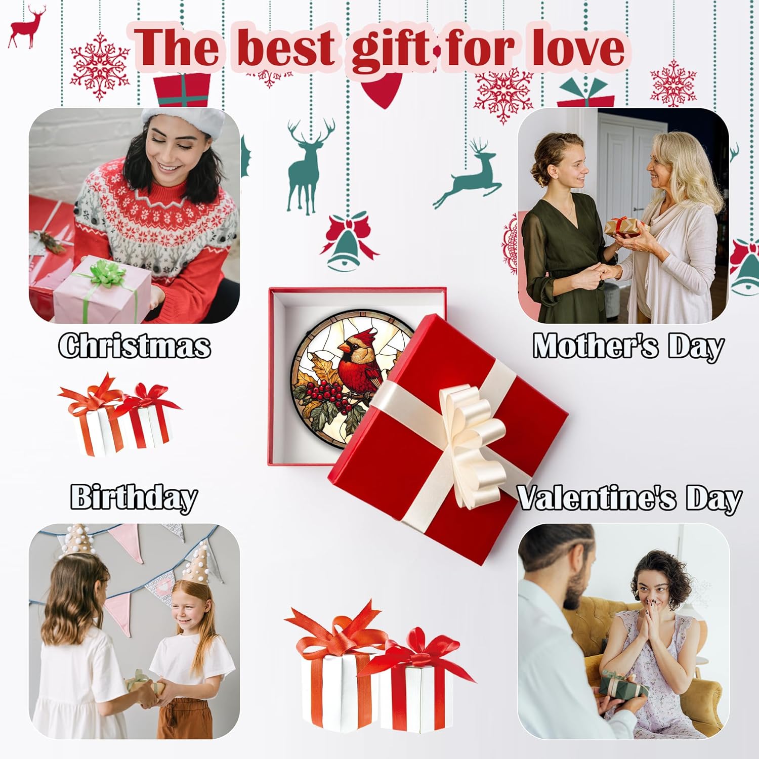 Stained Glass Window Hanging, Birds on a Branch Cardinal Sun Catchers Diamond Glass Panel Hangings Suncatcher Decor for Birthday for Women, Men, Wife, Aunt, and Mom 9.8X9.8IN