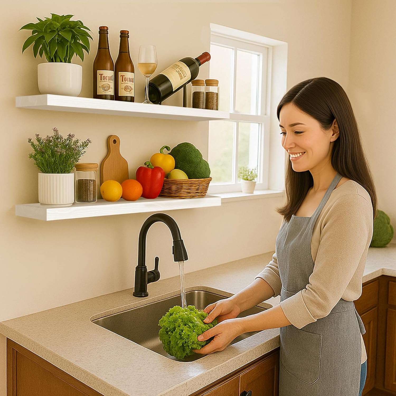 - MULTIFUNCTIONAL DECORATIVE SHELF: Modern minimalist style 48 floating wall shelf is suitable for a variety of scenarios. Use it in the kitchen to store spices, bottles, cups; install it in the bathroom to store shampoo, conditioner, body wash and more. Also perfect for bedroom, living room, office, etc., beautiful and space-saving