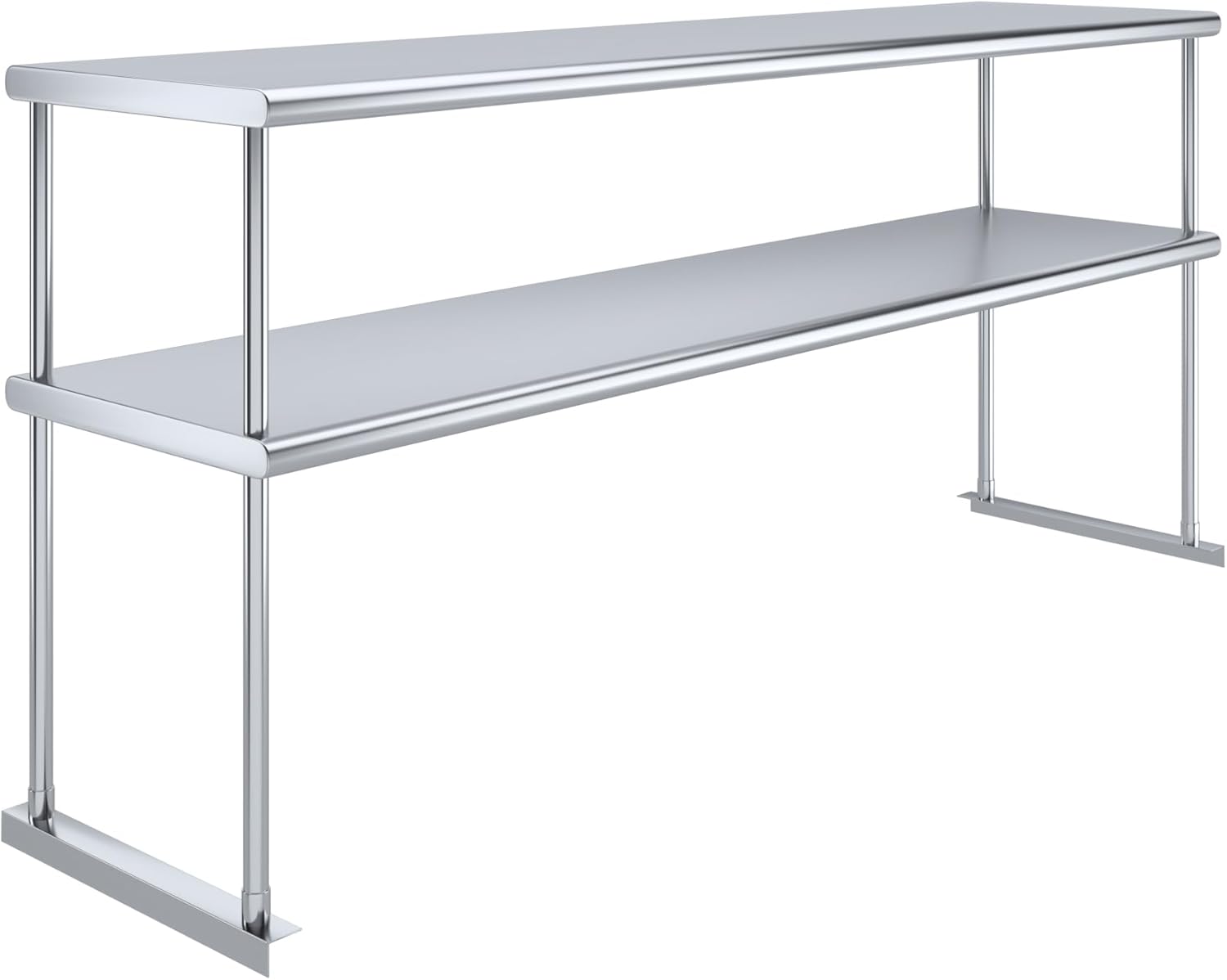 AmGood Stainless Steel Double-Tier Shelf | Work Table Overshelf | NSF Certified | Fits Over Tables | Many (72 in. Long x 18 in. Deep)