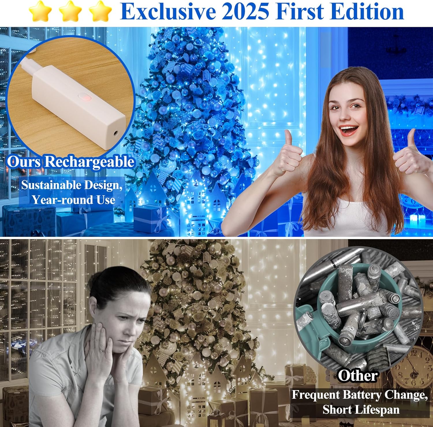- 2025 Specially Developed Battery String Lights: Say goodbye to disposable batteries and embrace sustainability! Our rechargeable Type-C power bank (cable included) powers the twinkle lights for 30+ hours of cordless glow. When itโs time to recharge, simply detach the compact, lipstick-sized power bankโno need to move the entire fairy lights. Designed with an innovative, patented structure, this power bank offers a smarter, greener way to shine
