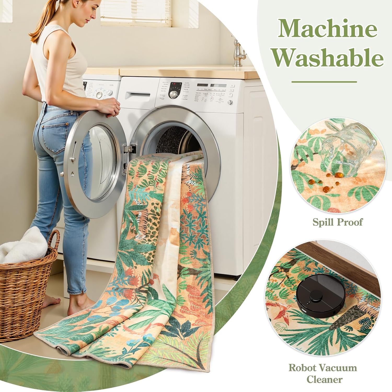 - 【Easy to Clean】: This dining room rugs is machine washable, making cleaning a breeze. Simply toss it in the washer or spot-clean minor stains to keep it looking fresh, saving you time and effort in maintaining a tidy home.