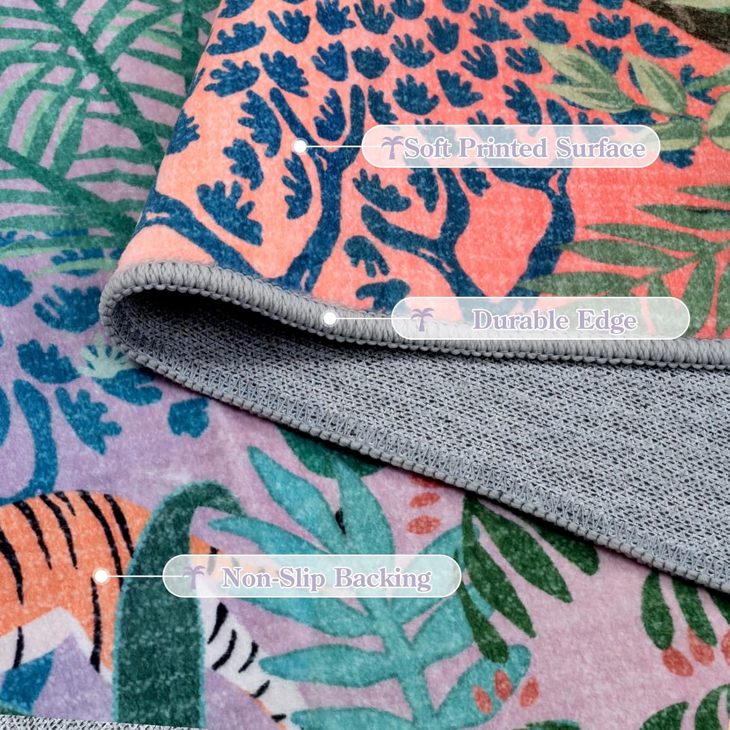 LIVEBOX Jungle Rugs 5x7 Kids Rugs for Bedroom Girls, Soft Lavender Rug for Nursery Baby Room, Non-Slip Girls Bedroom Rug, Machine Washable Purple Modern Dining Room Floor Carpet