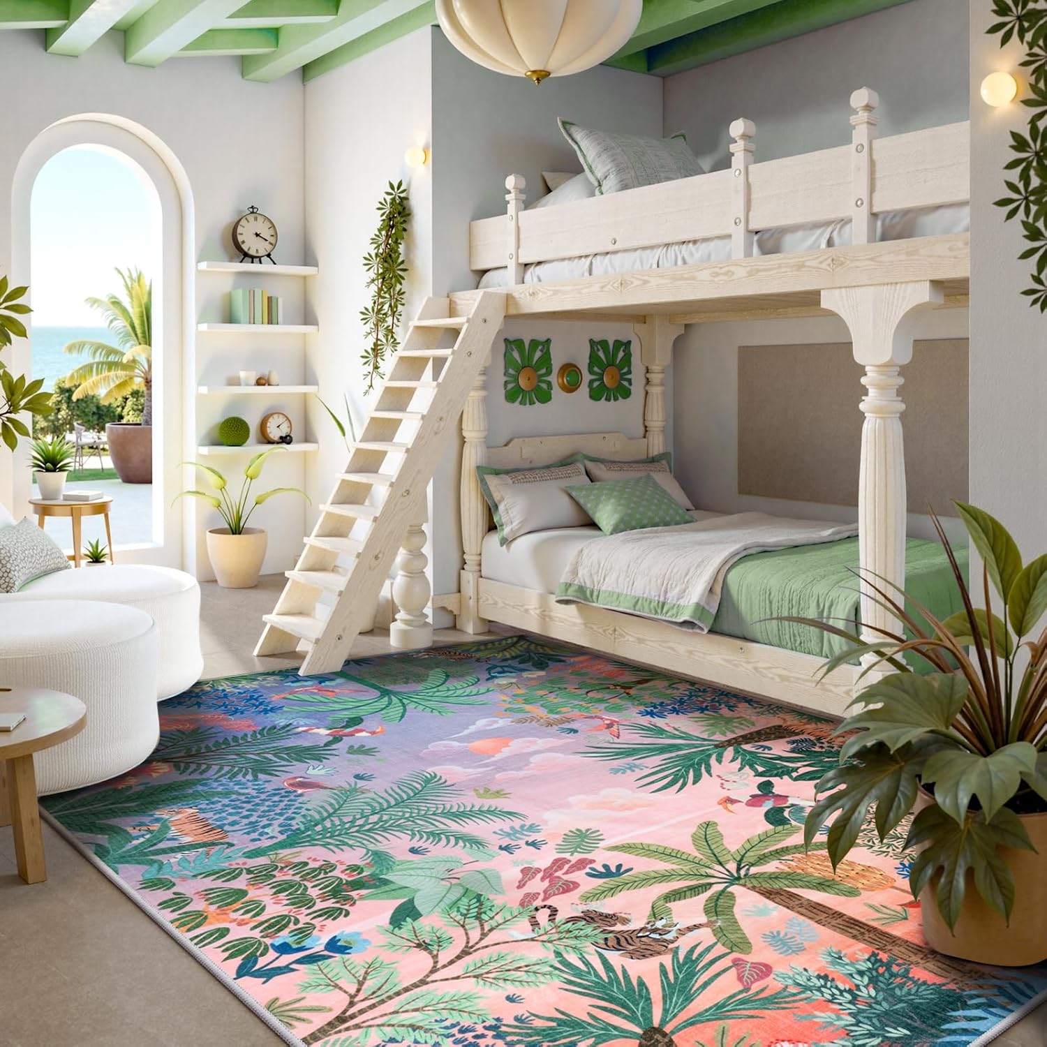 - 【Soft Material with Ideal Thickness】:Made from low-pile polyester, the rug feels soft yet durable. Its balanced thickness provides comfort without bulk, making it an ideal girls bedroom rug for everyday use without interfering with door clearance.