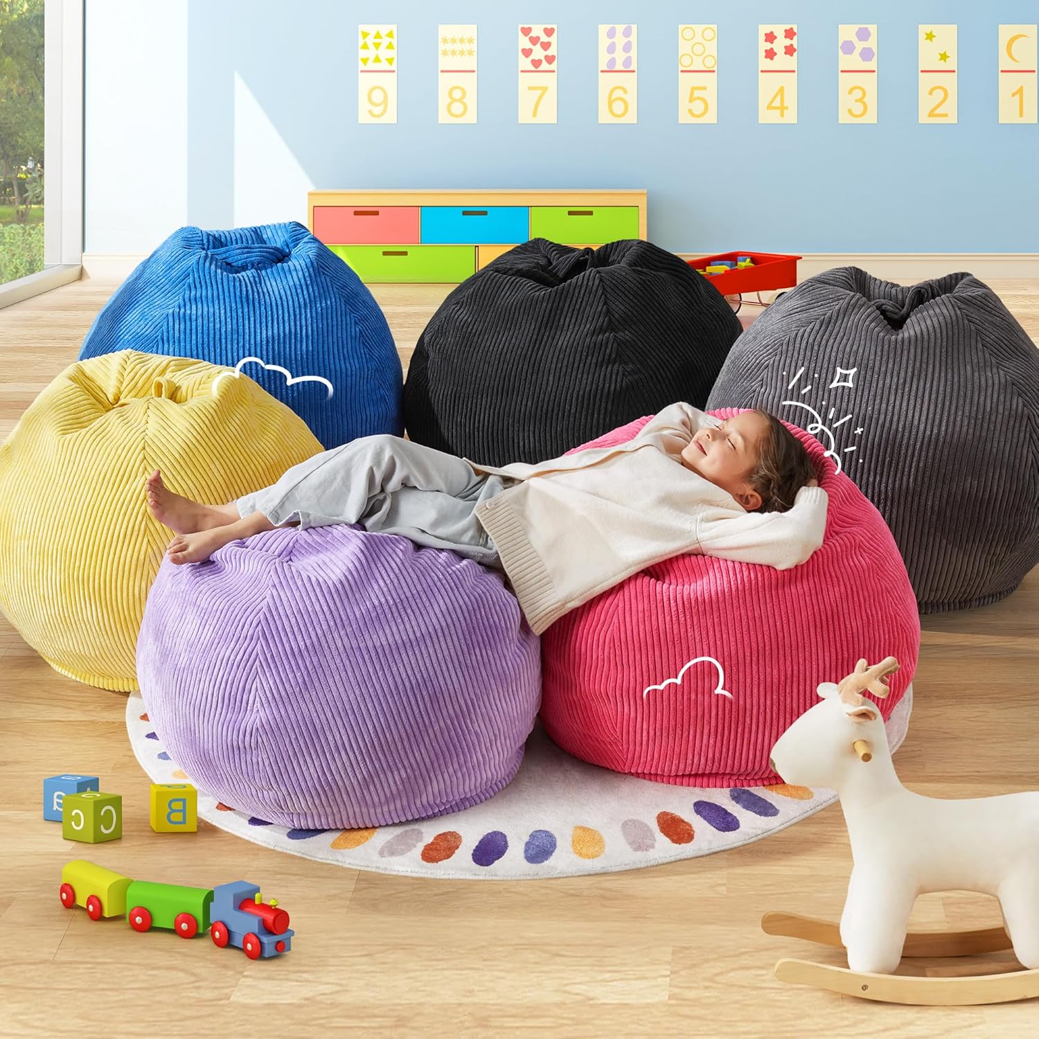 - Creative Design: Hobestluk bean bag chairs look like a tear drop with a wide base that narrows towards the top. There are six colors for you to choose in this design. Plus, our bean bag is made of comfy textured corduroy fabric and high-density memoy foam, which feels like you're sinking into a cloud.